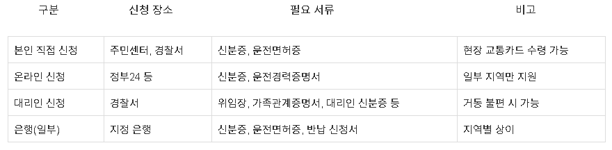 - 신청 즉시 교통카드 수령: 대부분 현장에서 바로 지급