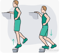 - 이어서 앞꿈치로 체중을 옮기며 뒤꿈치를 들어 올린다.