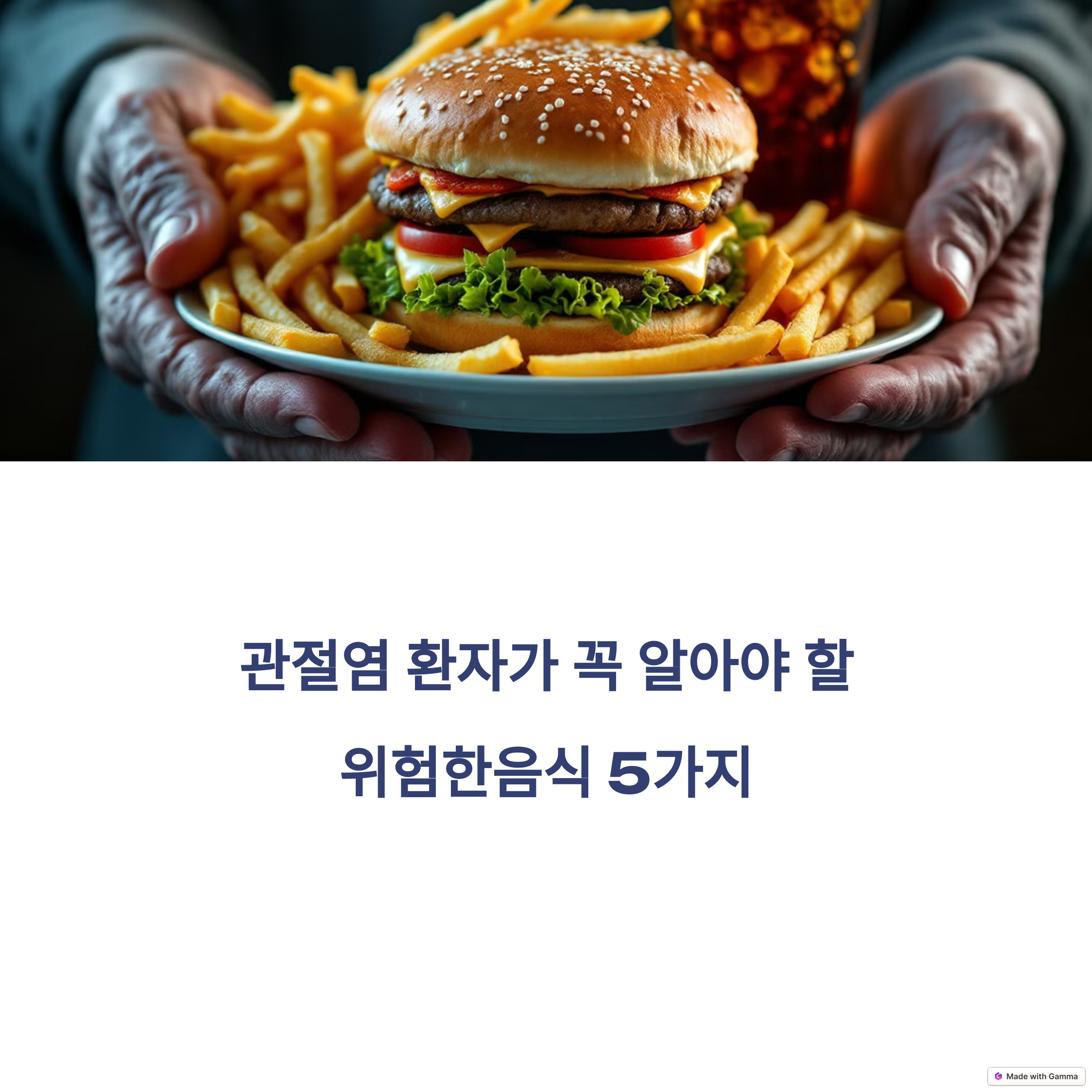 관절염 환자는 염증을 유발하거나 증상을 악화시킬 수 있는 음식을 피하는 것이 중요합니다. 가공식품, 설탕이 많은 음식, 처리된 고기와 붉은 고기, 글루텐 함유 식품, 고염도 식품, AGEs가 높은 식품을 피하고, 대신 신선한 과일, 채소, 생선, 견과류 등을 포함한 균형 잡힌 식단을 유지하는 것이 좋습니다. 이러한 식단은 염증을 줄이고 관절 건강을 개선하는 데 도움이 될 수 있습니다.