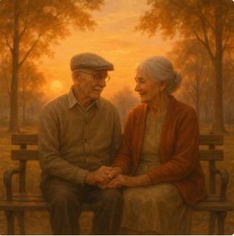 - 이제는 서로 늙어서 건강과 시간이 얼마 남지 않았다는 것을 느끼며, 서로의 손을 꼭 잡고 마지막 이별을 준비하는 모습을 보여줍니다.