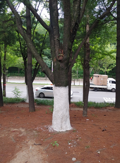 - 특히 온도 차가 심한 지역이나 수피가 얇은 어린나무, 사과나무, 가로수 등에는 필수적인 관리법입니다.