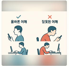 - 최악의 자세: 한 손으로 스마트폰, 거북목·라운드숄더 동반