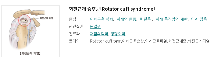 - 60대 이상: 회전근개파열, 퇴행성 질환, 석회성건염