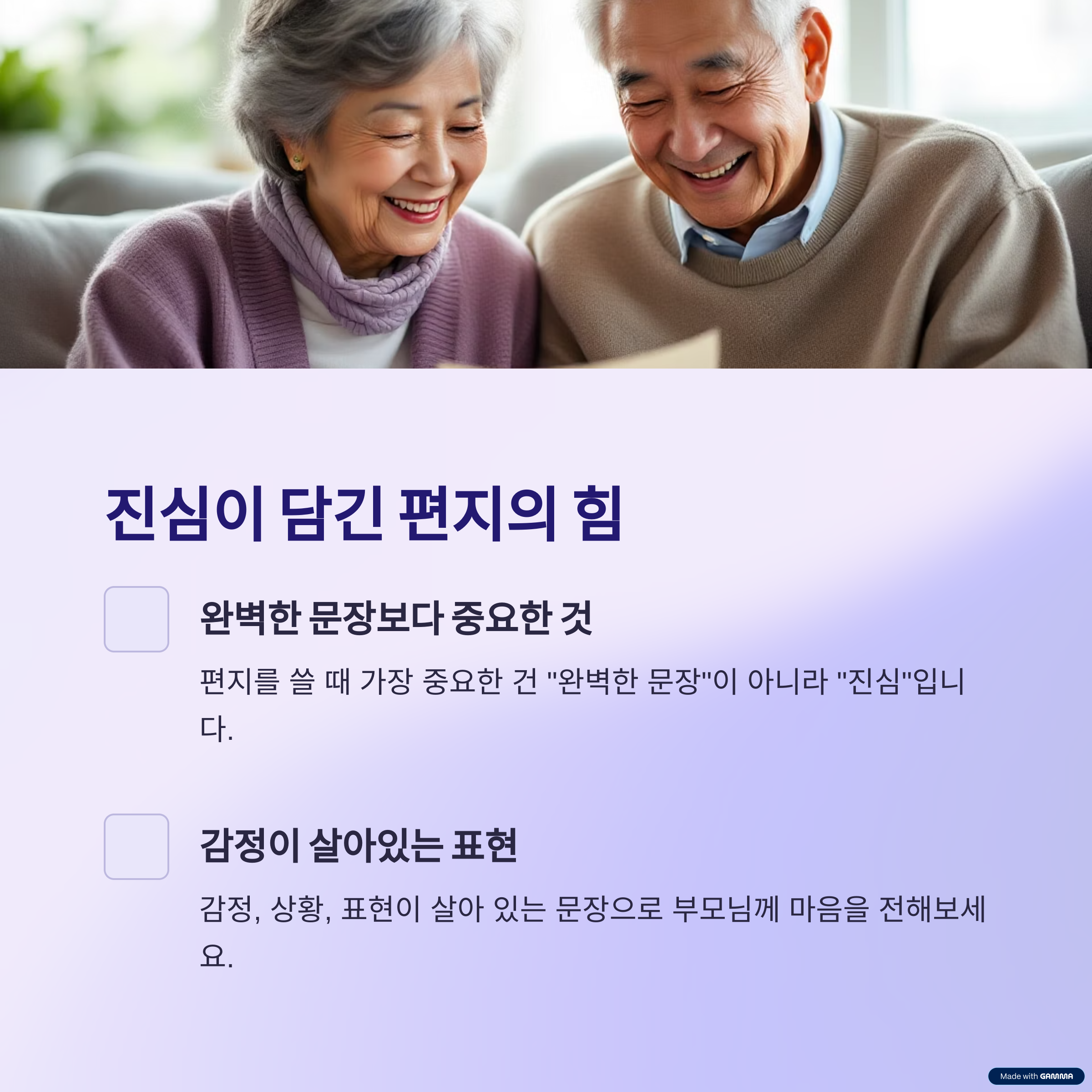 진심 어린 문장 하나가 부모님의 하루를 바꿉니다