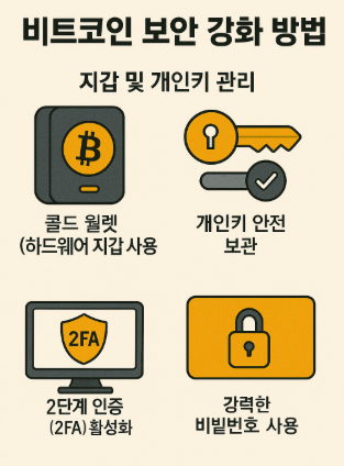 보안을 강화하려면 콜드 월렛 사용, 2단계 인증, 강력한 비밀번호, 피싱 주의, 정기적 백업 등 기본 원칙을 반드시 실천해야 합니다.