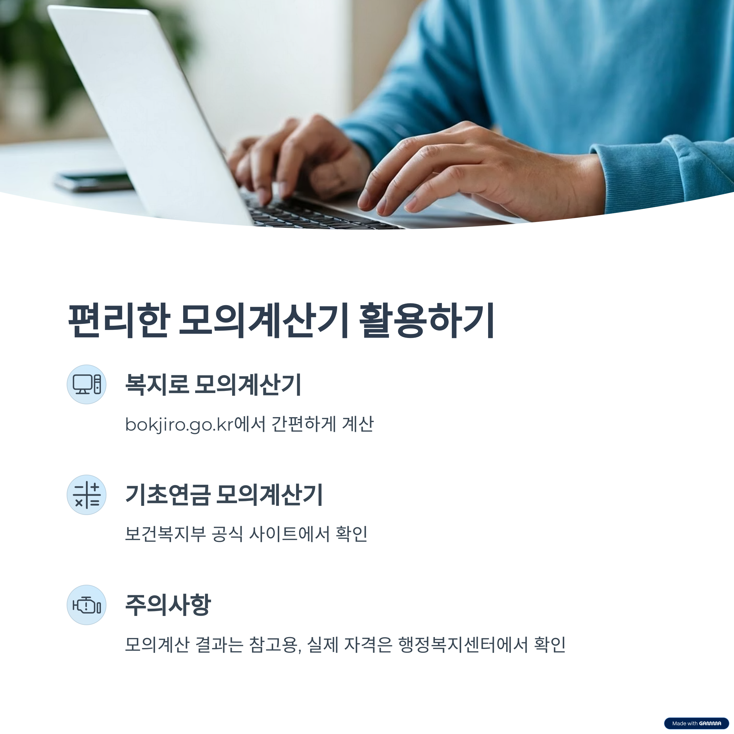 주의사항: 모의계산 결과는 참고용이며, 실제 자격 여부는 관할 행정복지센터에서 확인하시기 바랍니다.