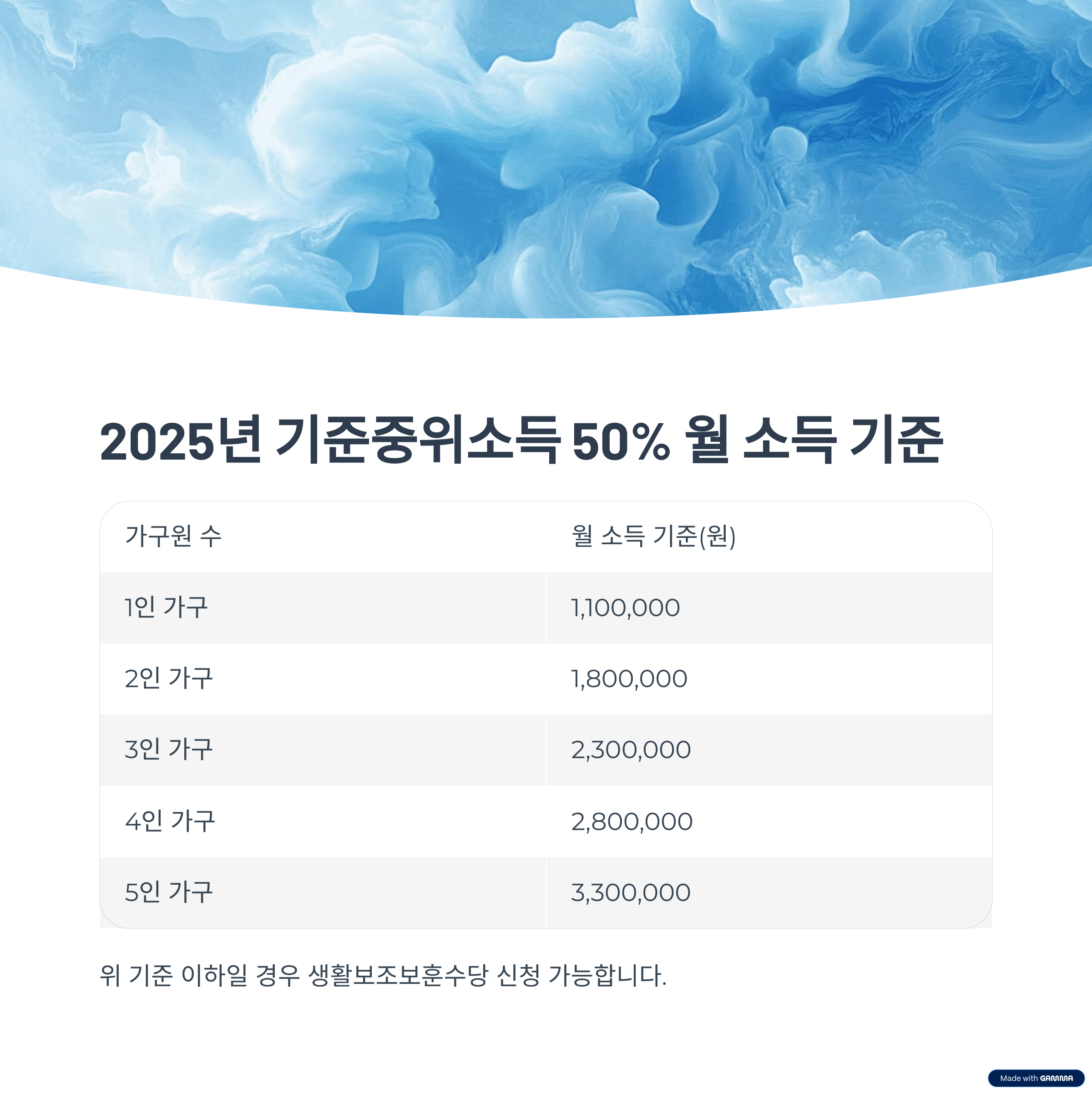참고: 2025년 기준중위소득 50% 이하 월 소득 기준