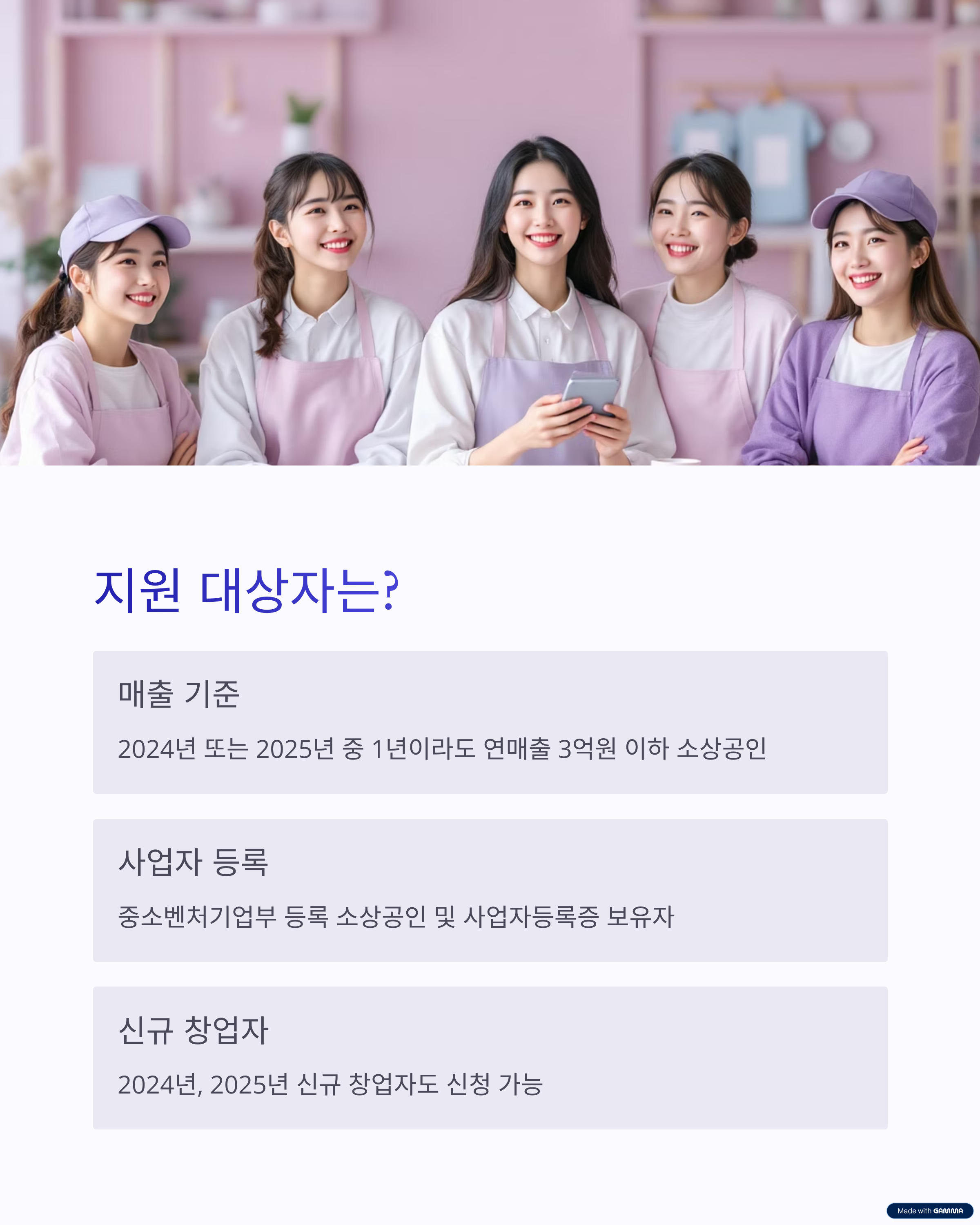 | 매출 기준 | 2024년 또는 2025년 중 1년이라도 연매출 3억원 이하 소상공인 |