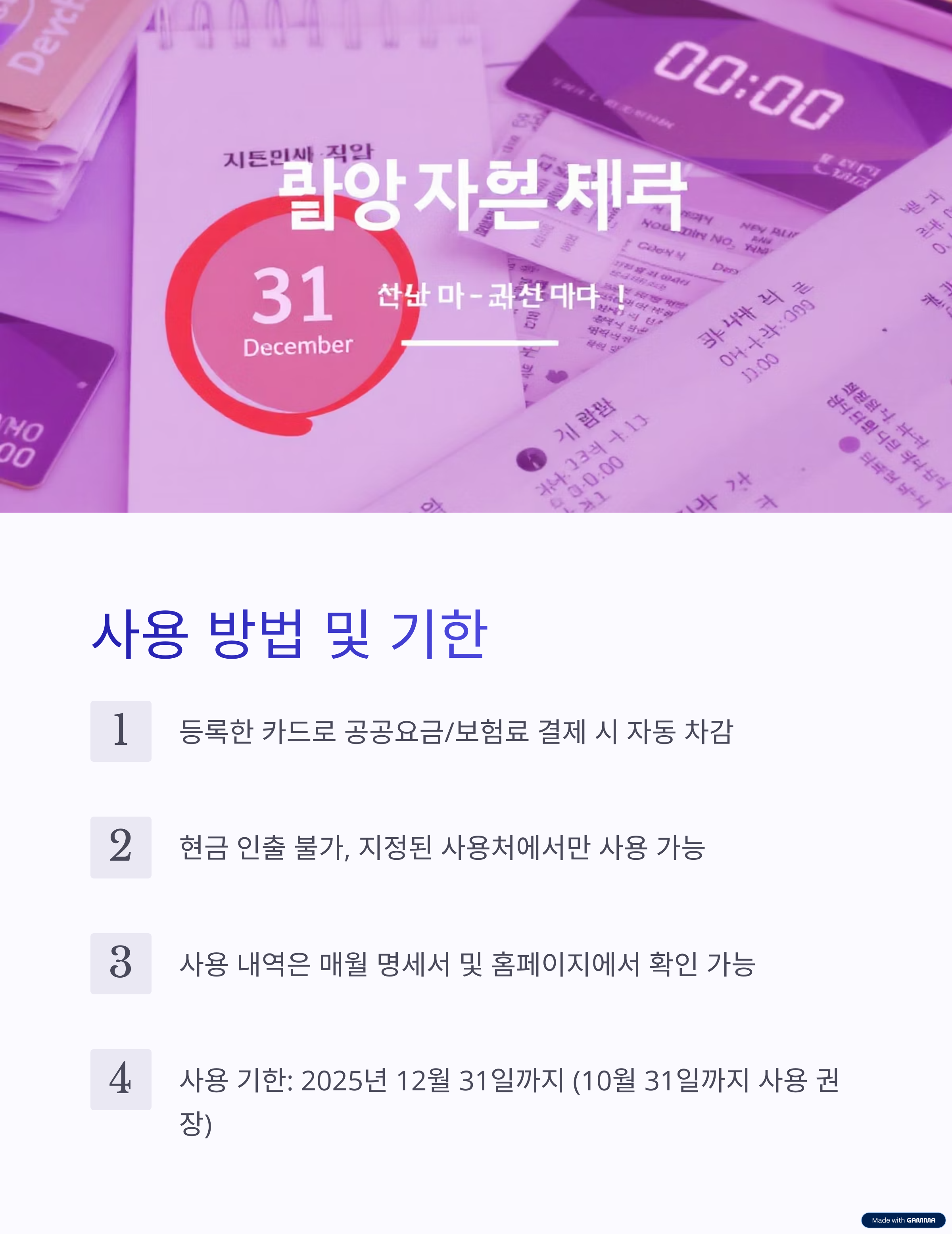 내 카드로 공공요금 자동 차감! 지원금 소진 전에 꼭 사용하세요.