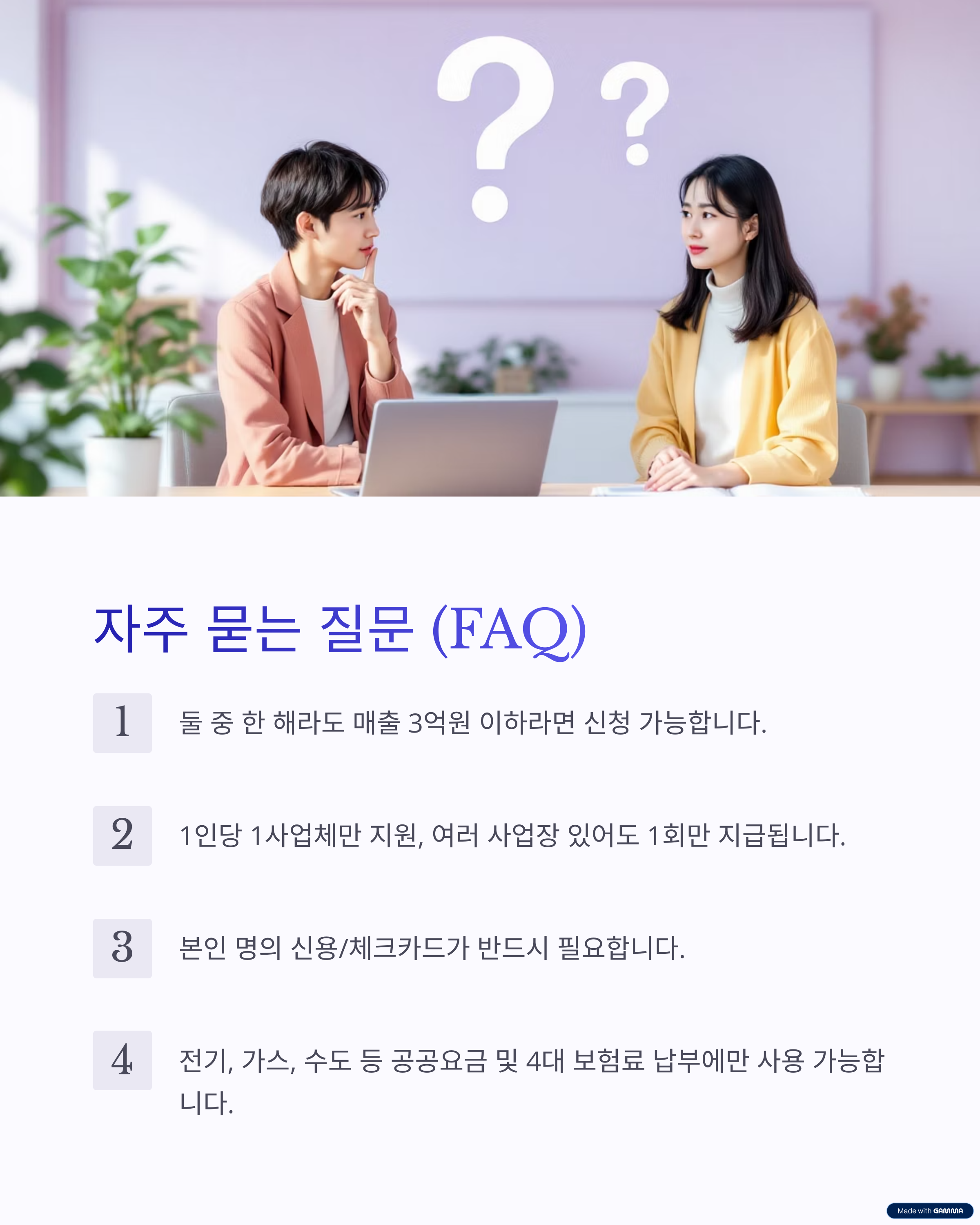 | 복수 사업장 | 1인 1사업체만 지원, 여러 사업장 있어도 1회만 지급 |