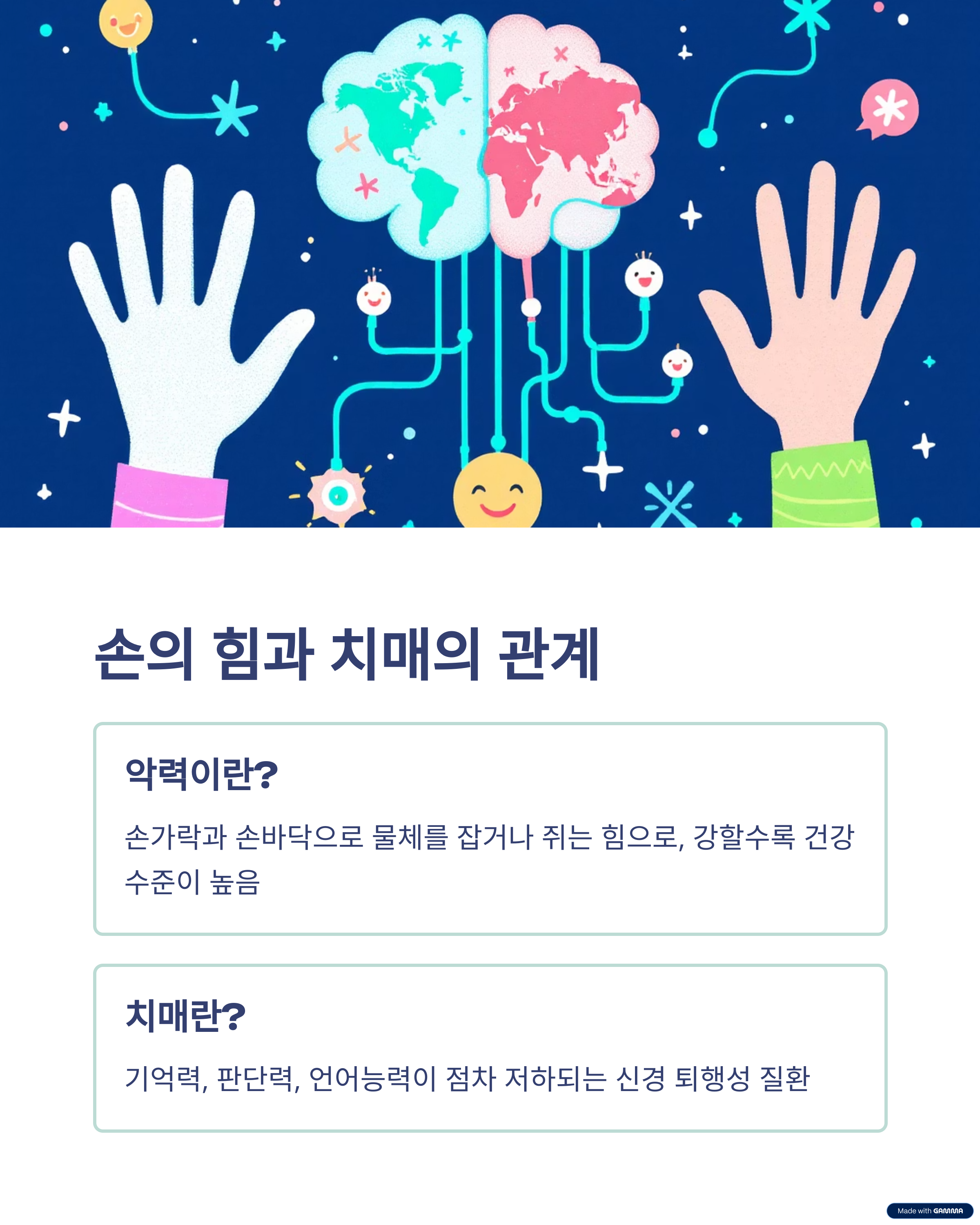 손의 힘(악력)이 약해지면 치매 위험이 높아지는 이유, 과학적 근거, 자가진단 방법, 실천법까지 모두 알아보세요.