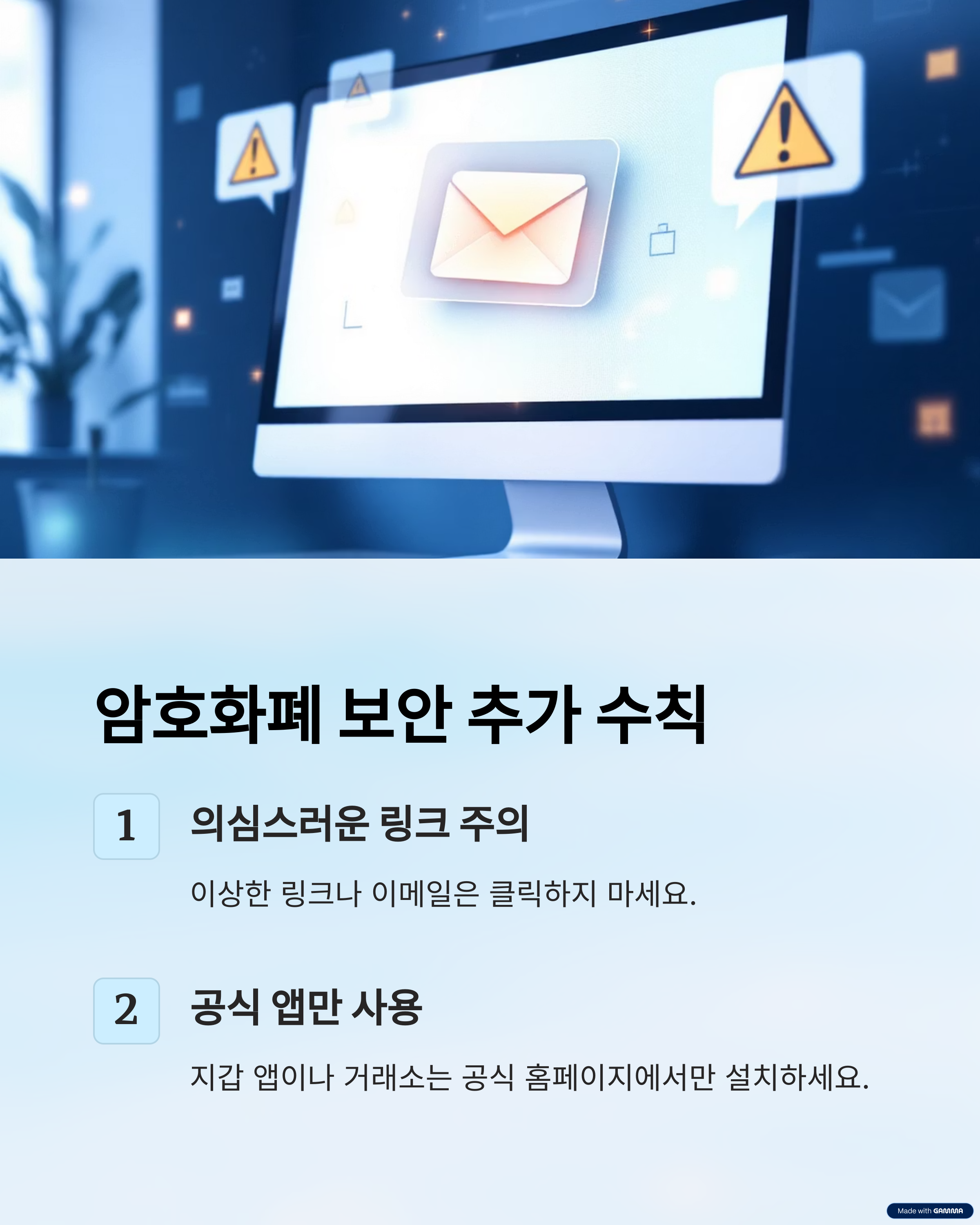 - 가족이나 친구에게도 암호화폐 안전수칙을 꼭 알려주세요!