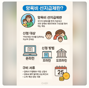 2025년 7월부터 시작된 양육비 선지급제는 한부모 가족이 전 배우자(비양육자)에게서 양육비를 받지 못할 때, 국가가 먼저 양육비를 지급해주는 제도입니다.