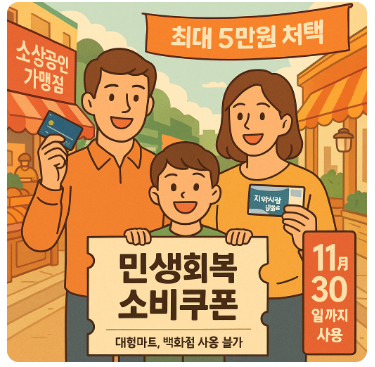 안녕하세요! 오늘은 **정부가 전국민을 위해 시작한 ‘민생회복 소비쿠폰’**과 여기에 연계된 신용카드사의 추가 혜택 이벤트에 대해 쉽게 알려드릴게요. 초등학생도 이해할 수 있도록 쉽고 자세하게 설명해보겠습니다!