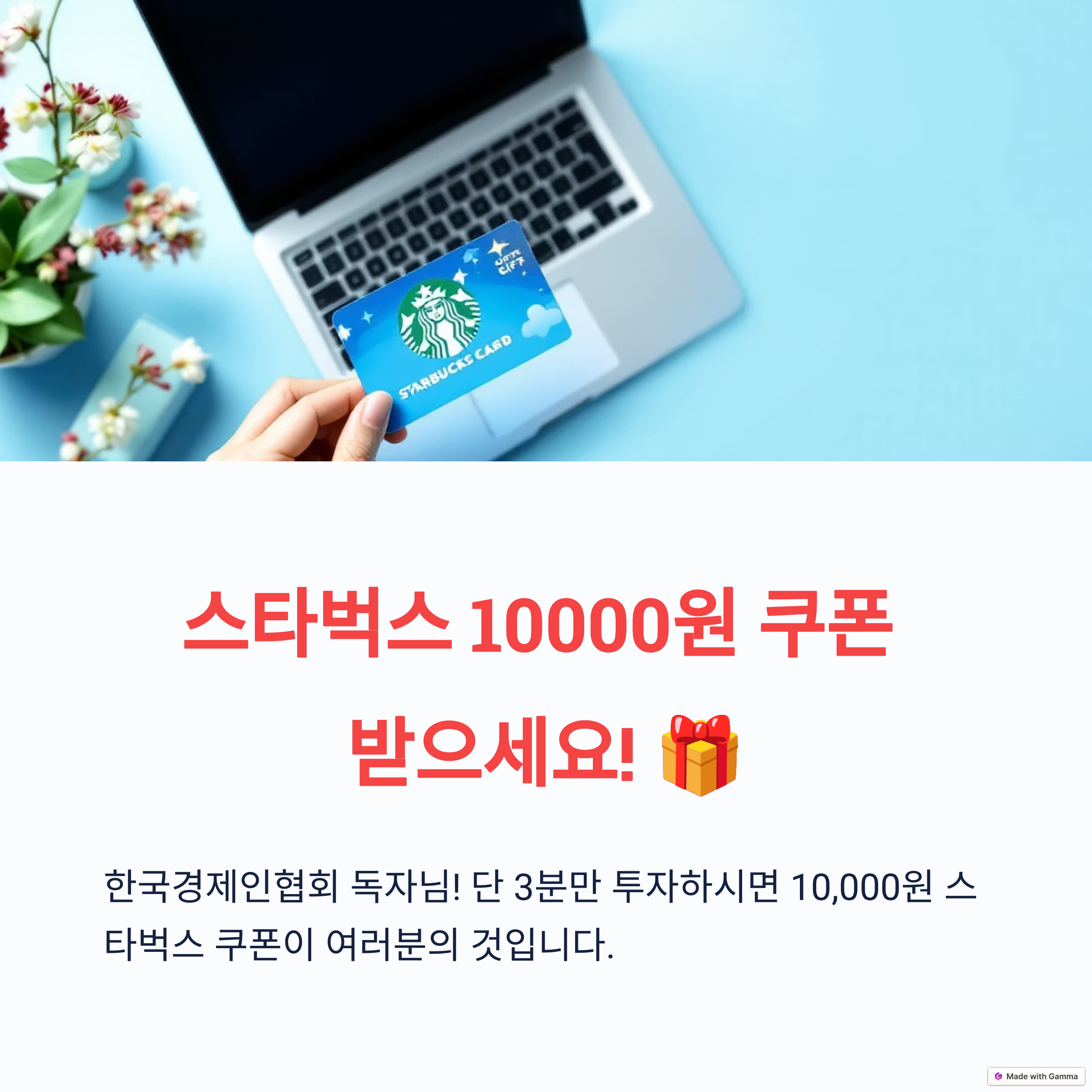 한국경제인협회(한경협)가 독자를 위한 특별한 이벤트를 진행합니다. 독자 만족도 조사에 참여하면 스타벅스 10,000원 쿠폰을 받을 수 있는 기회! 이번 이벤트는 콘텐츠 품질 향상을 위해 독자의 의견을 반영하고자 마련되었습니다. 아래에서 자세한 내용을 확인하세요.