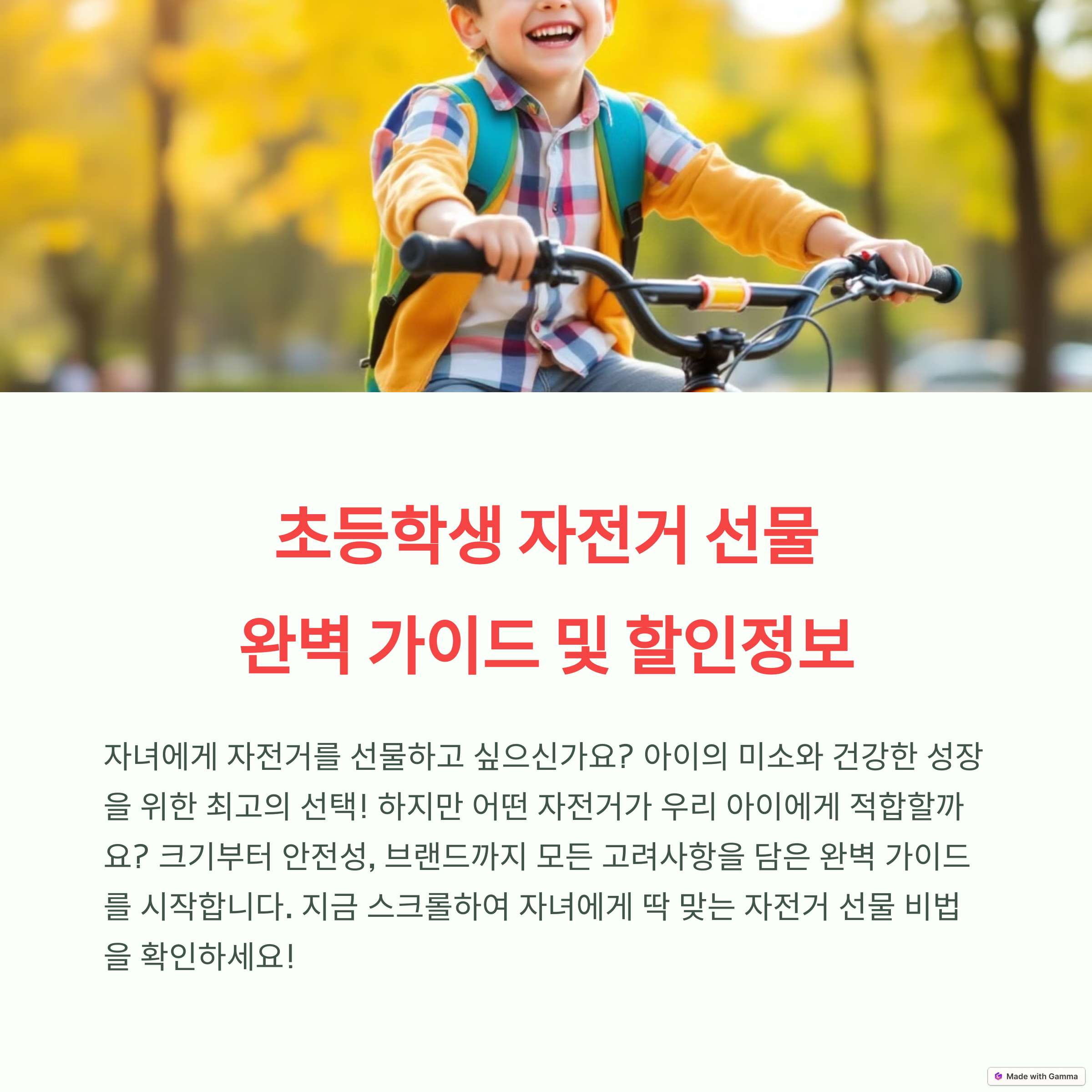 초등학생 자녀에게 자전거를 선물하려면 아이의 신체 조건과 안전성을 고려한 선택이 중요합니다. 아래는 자전거 선택 방법과 할인 정보를 정리한 가이드입니다.