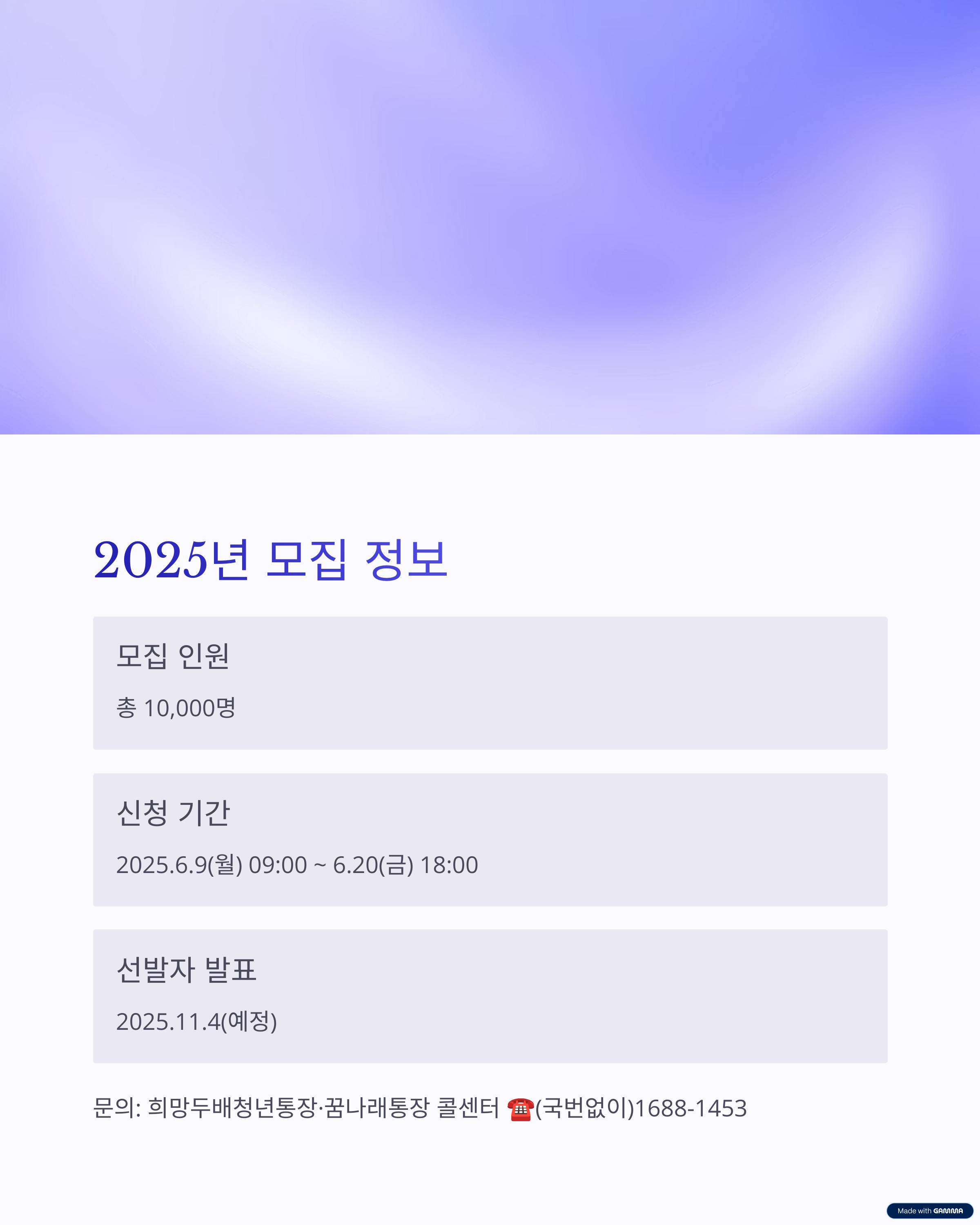○문의처 : 희망두배청년통장·꿈나래통장 콜센터 ☎(국번없이)1688-1453