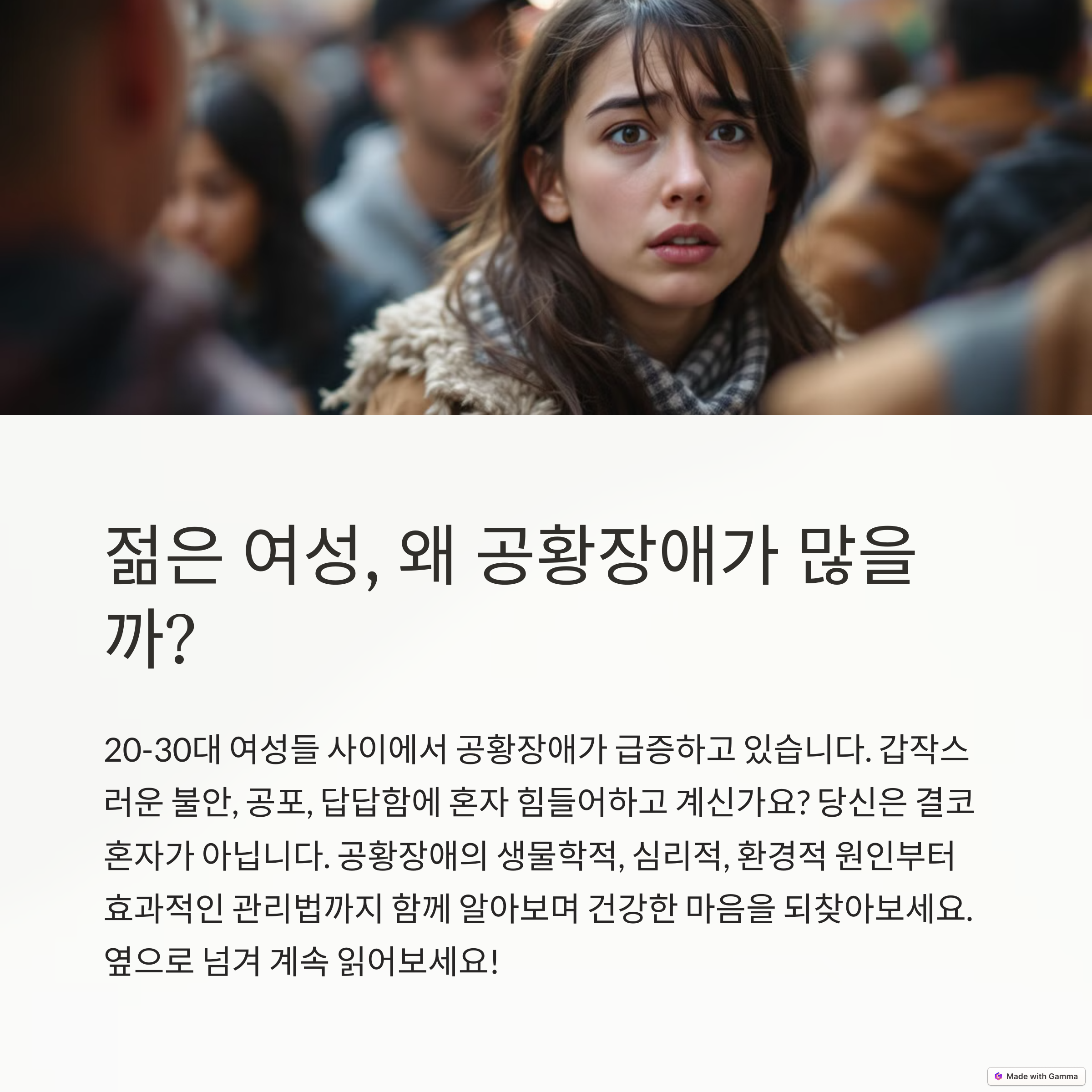 젊은 여성층에서 공황장애가 많이 발생하는 이유는 생물학적, 심리적, 환경적 요인들이 복합적으로 작용하기 때문입니다.