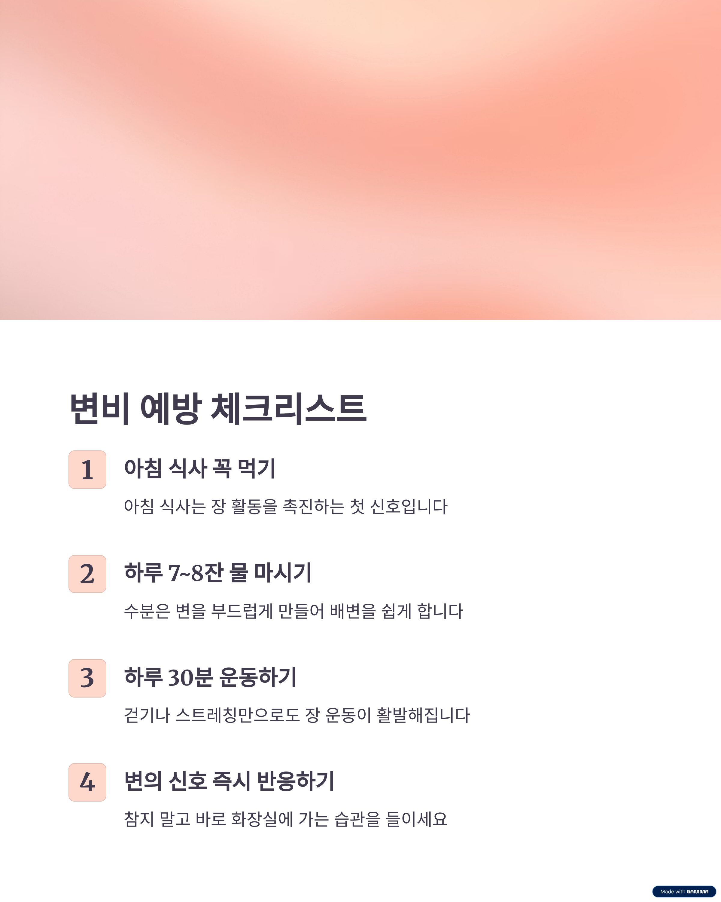 - 변비 예방을 위한 생활 습관 체크리스트