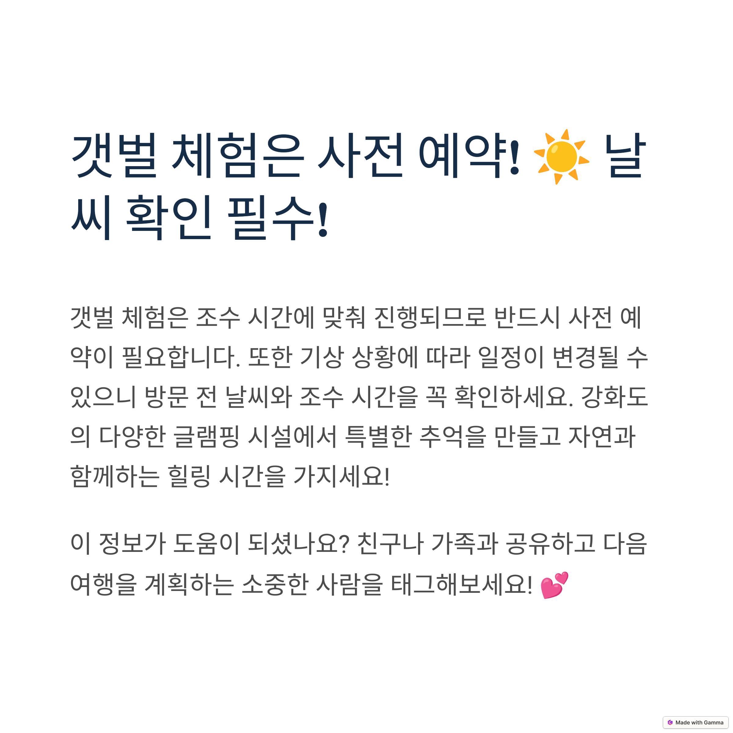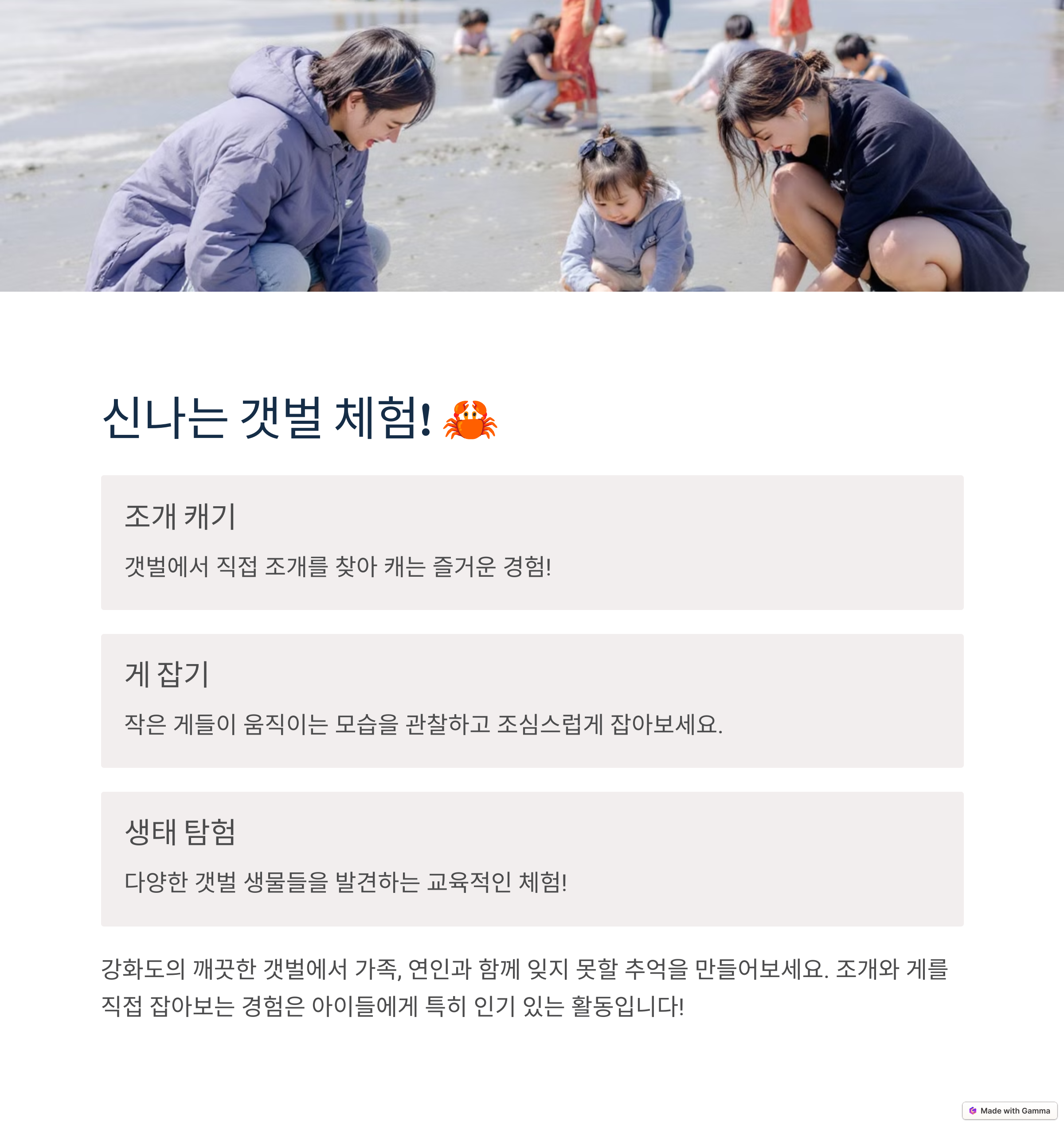 - 주의사항: 갯벌 체험은 사전 예약 필요