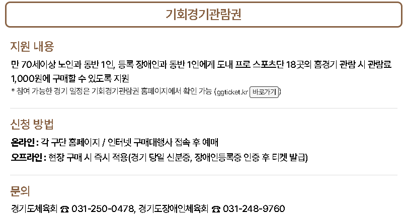 - 기회경기관람권: 어르신 및 보호자에게 스포츠 경기 관람 기회 제공