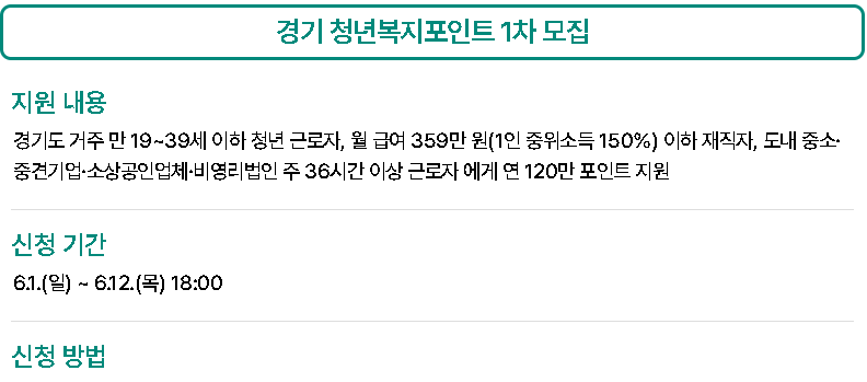 | 청년 복지포인트 | 근로 청년에게 연 120만원 상당 복지포인트 제공 |