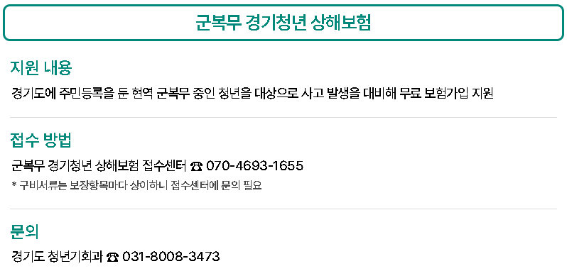 | 군복무 상해보험 | 현역 청년에게 무료 보험 가입 지원 |