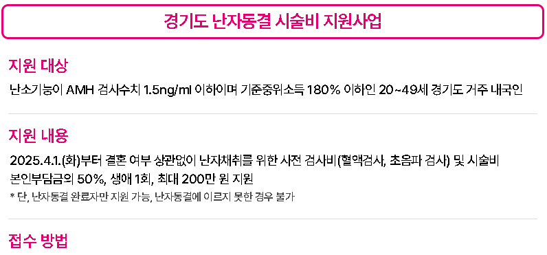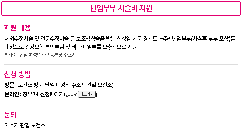 - 난자동결 시술비 지원: 난임 예방 위한 시술비 보조