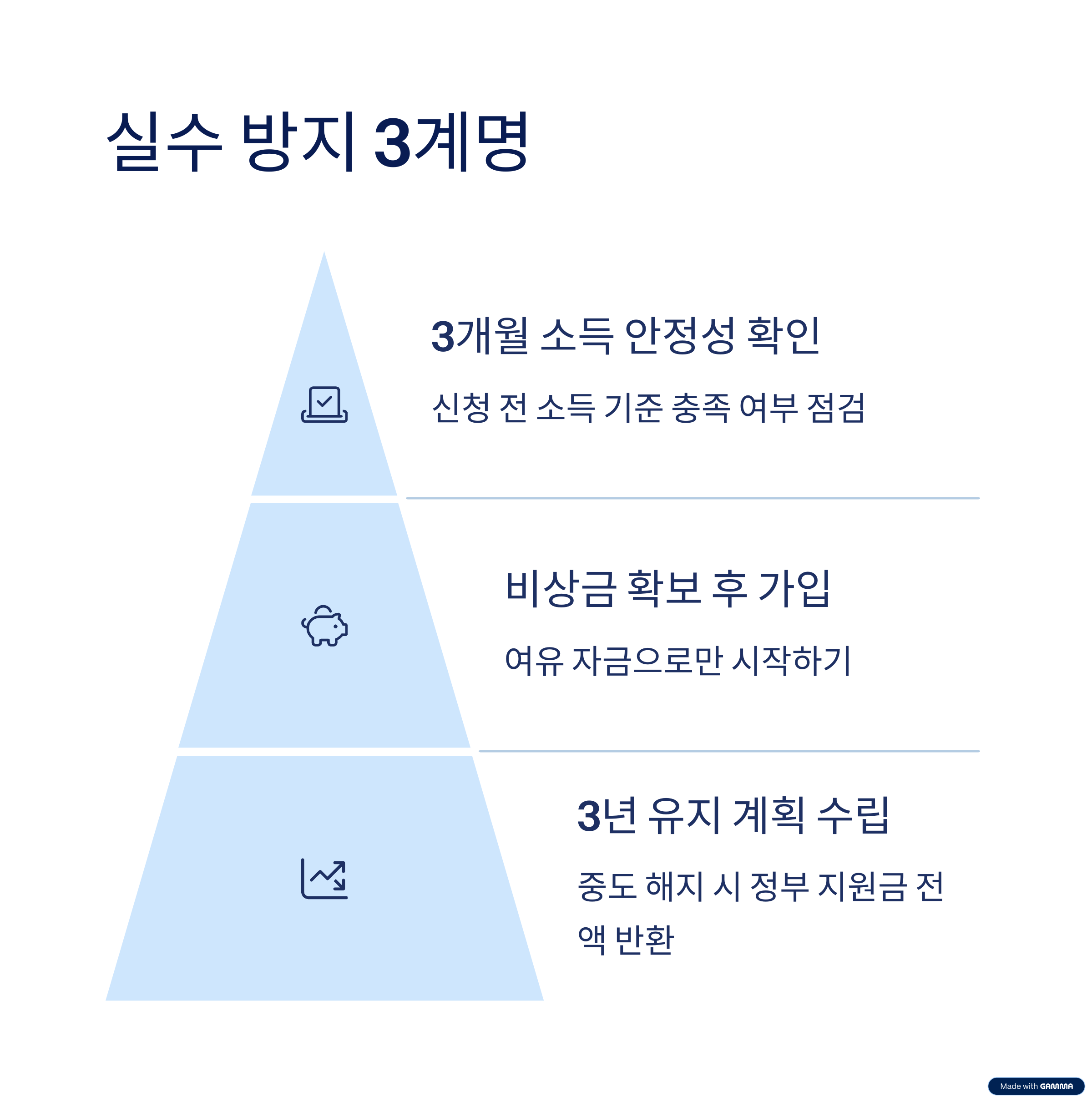 | 계획 수립 | 적립일 자동이체, 자산 계획 수립 | 계획 없이 급하게 가입 |