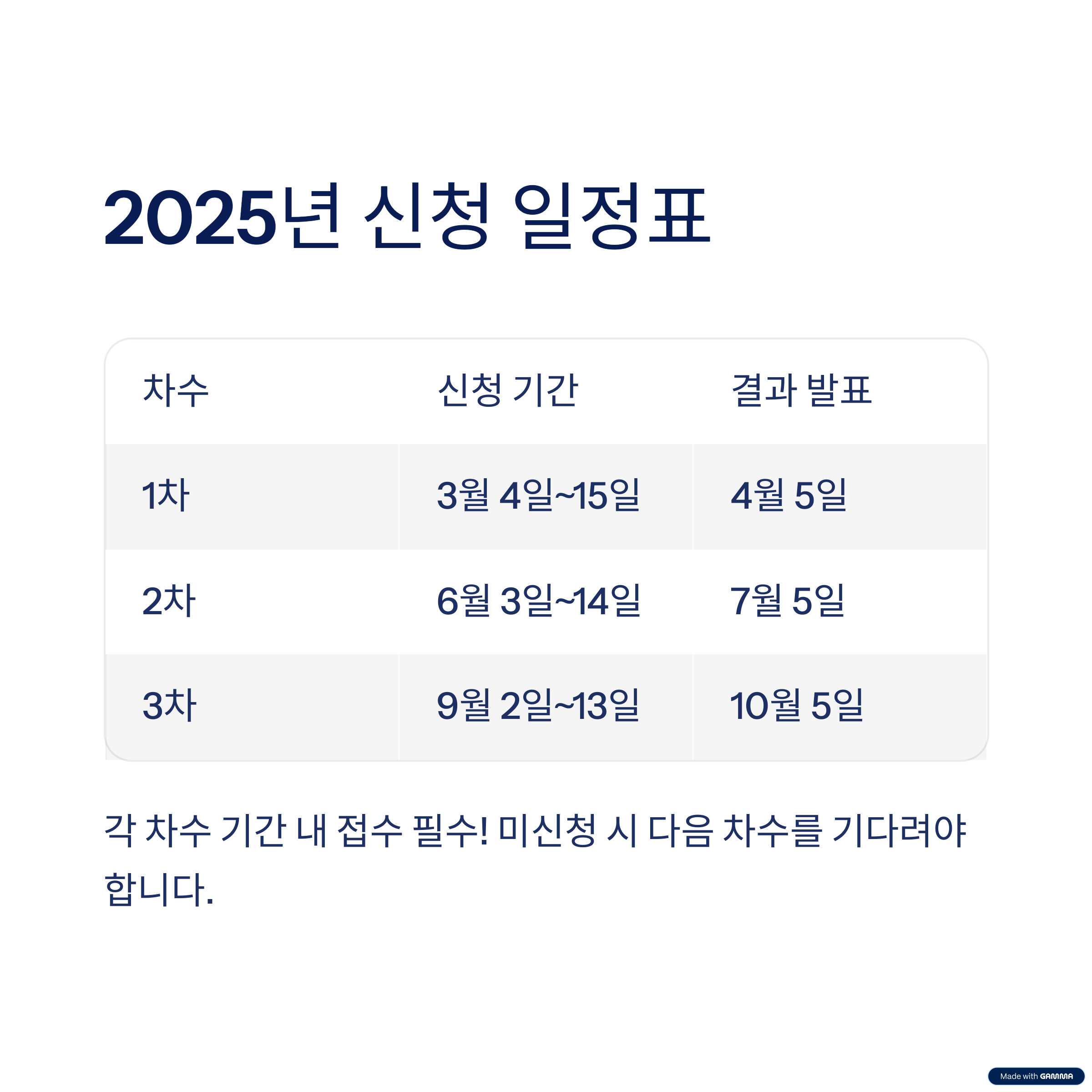 "상시 신청이 아니므로 반드시 각 차수 기간 내에 접수해야 하며,