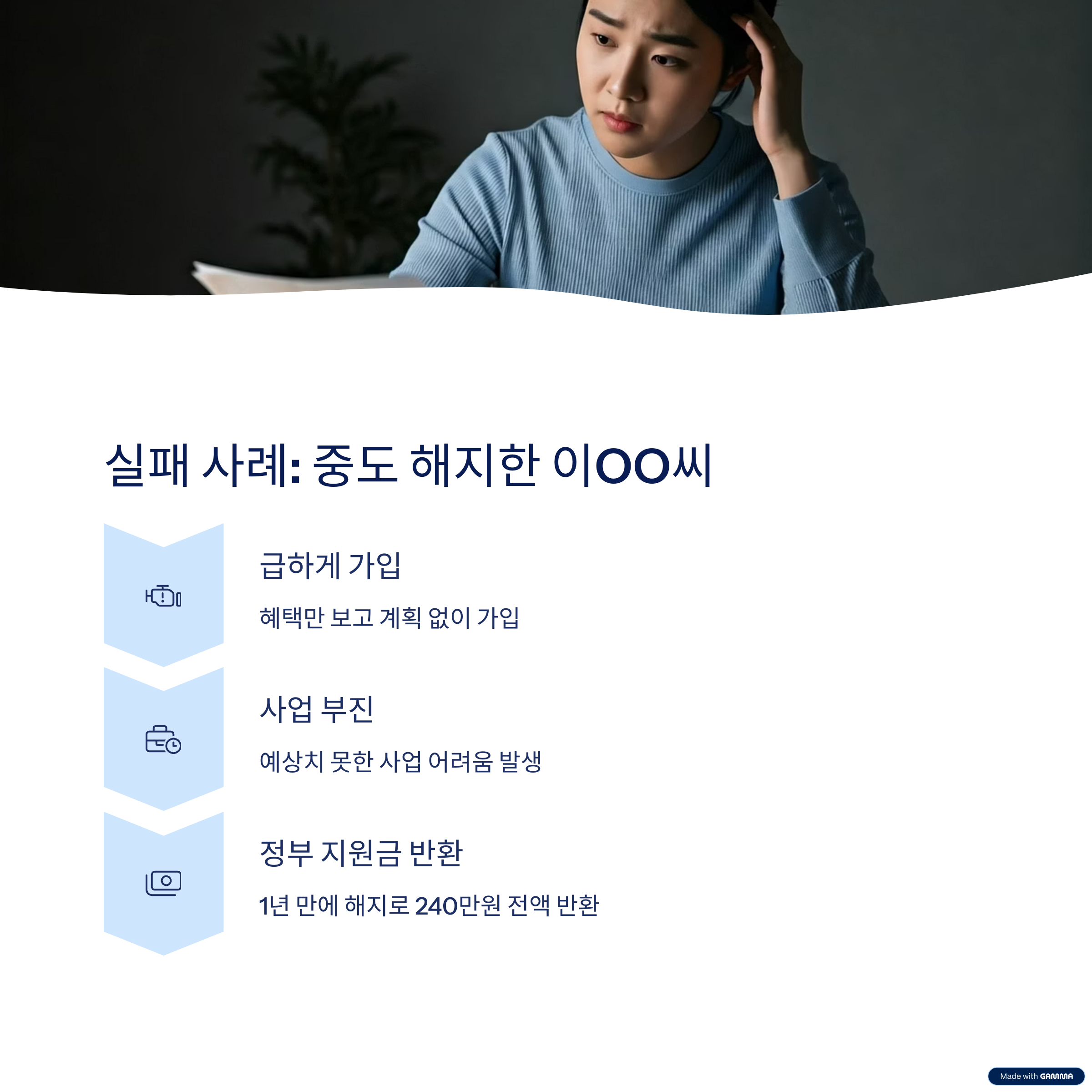 실패 사례 1: 중도 해지로 정부 지원금 전액 반환한 이OO씨