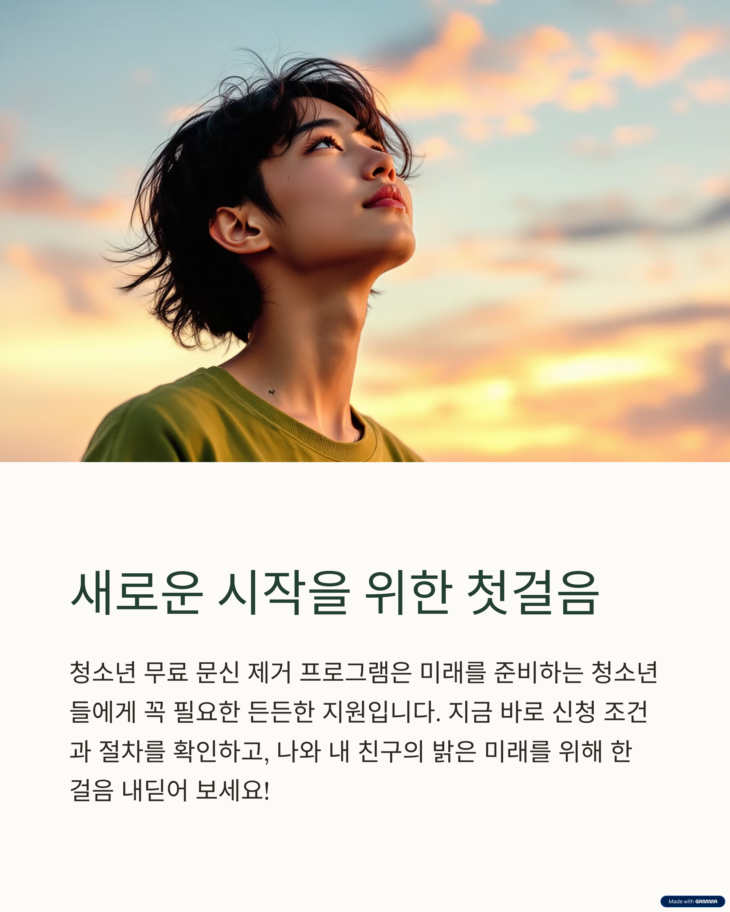 청소년 무료 문신 제거 프로그램은 미래를 준비하는 청소년들에게 꼭 필요한 든든한 지원입니다.