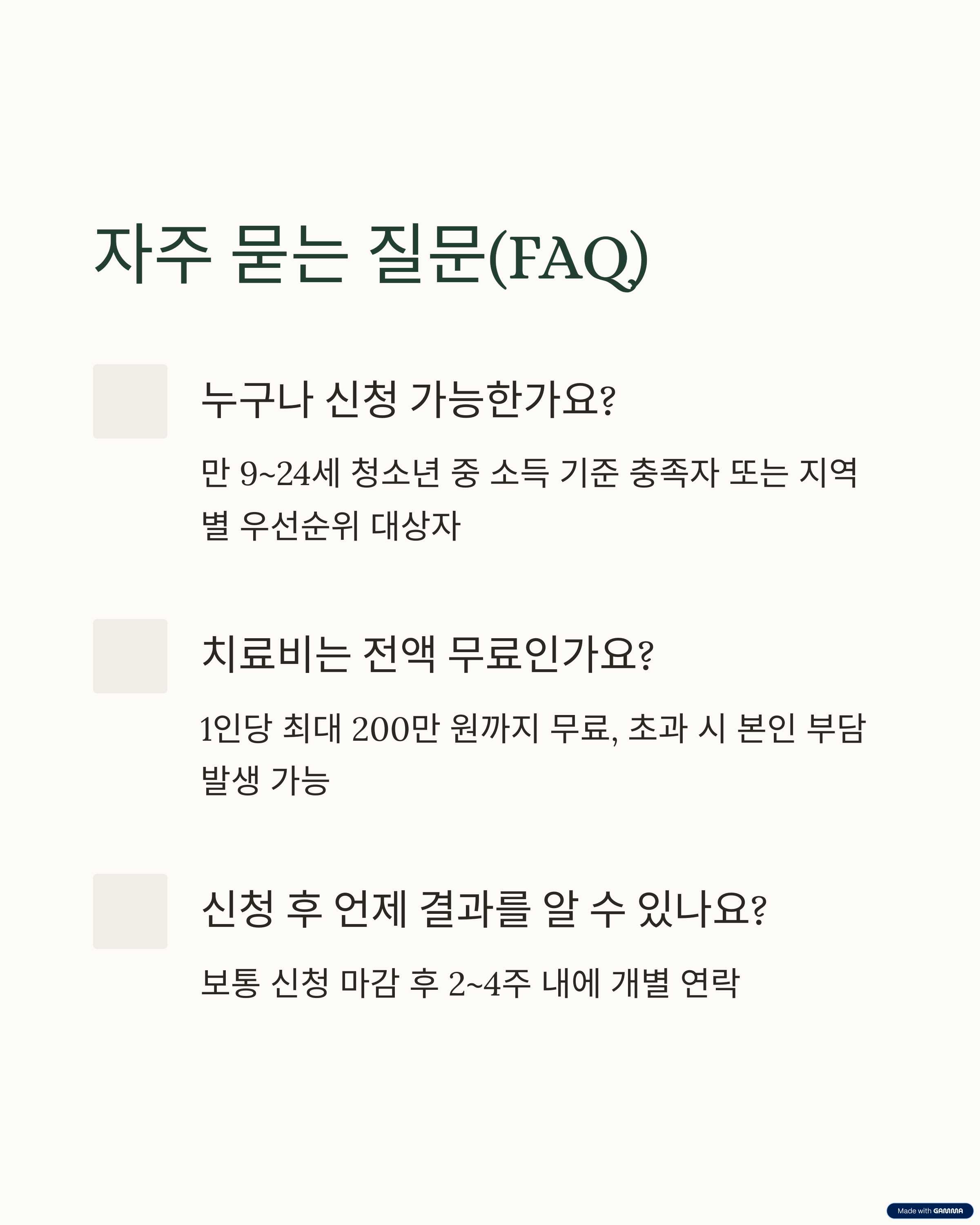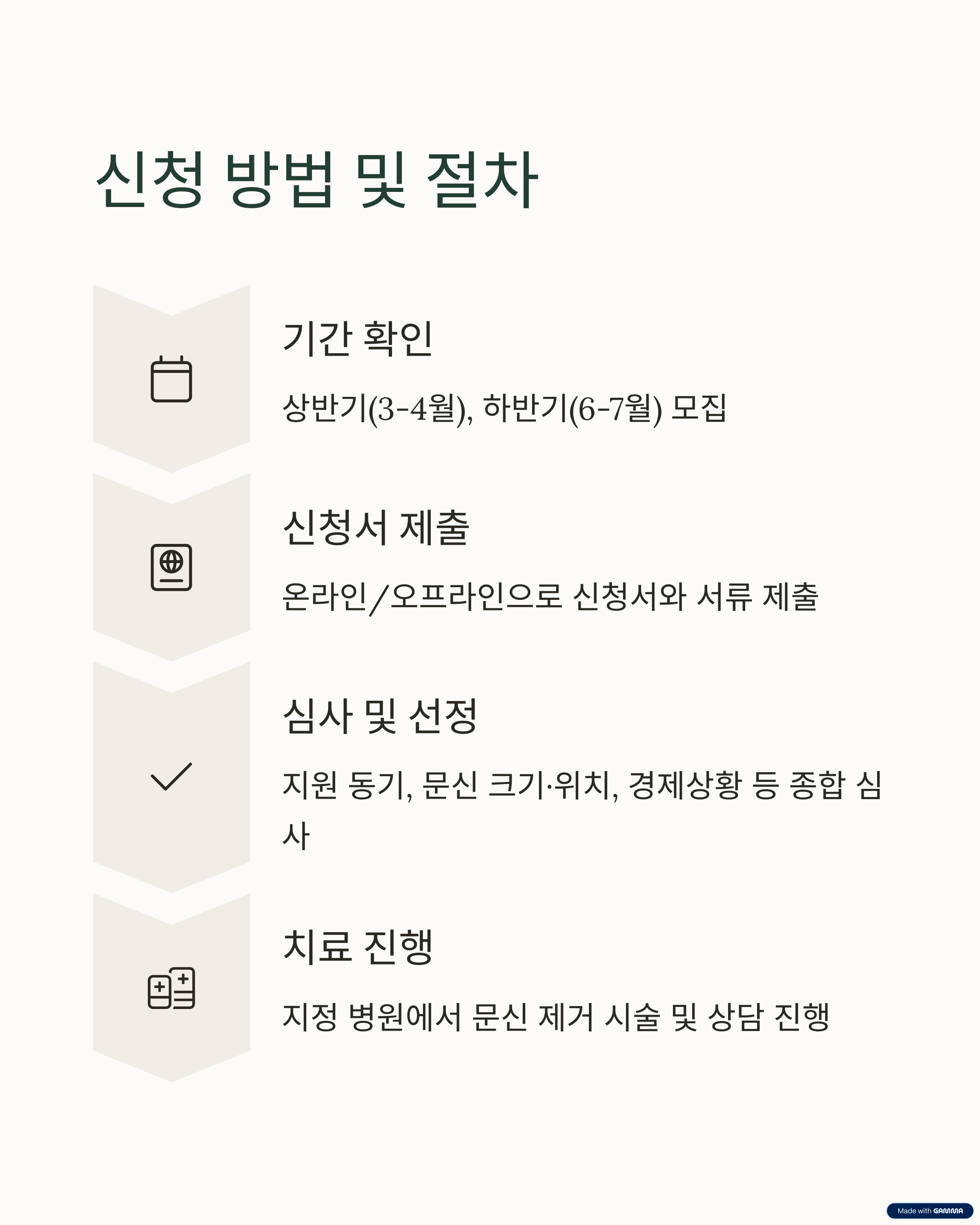 - 선정 후 치료 미이행 시 지원 취소될 수 있음