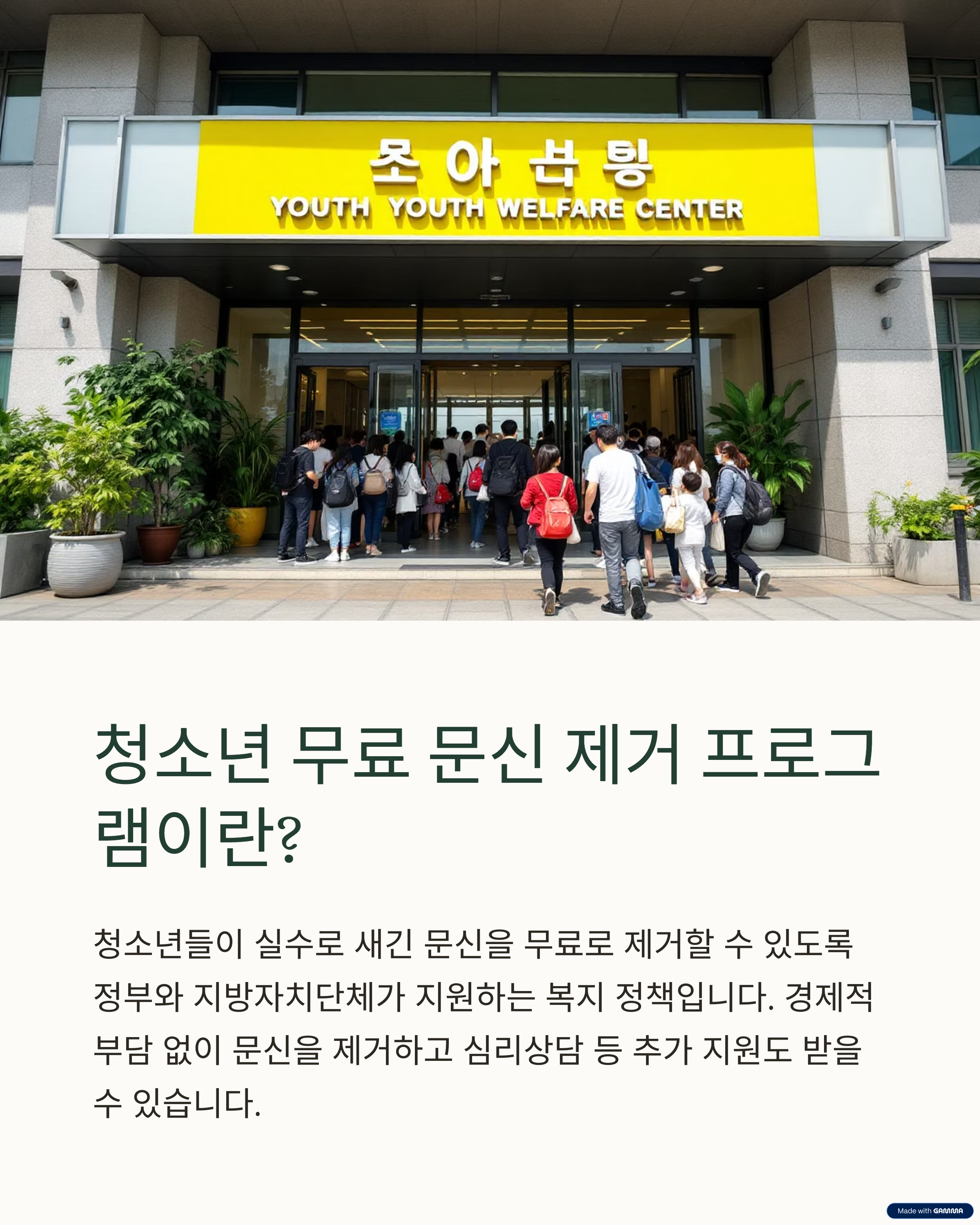청소년 무료 문신 제거 프로그램, 2025년 최신 정보 총정리! 지원 조건, 신청 방법, 자격, 혜택, 실제 경험담까지 한눈에 확인하고 빠르게 신청하세요.