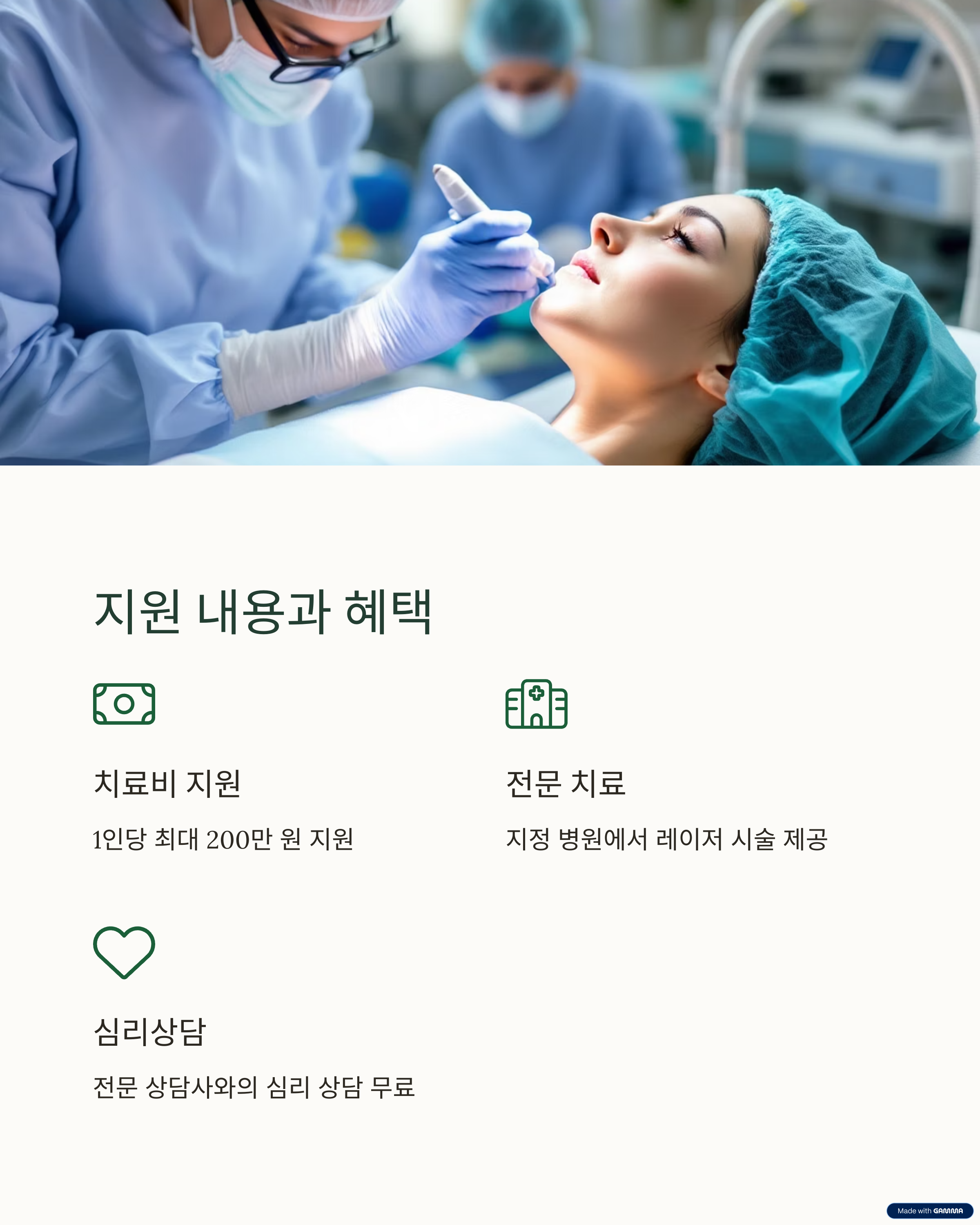 - 지정 병원에서 레이저 시술 등 전문 치료 제공