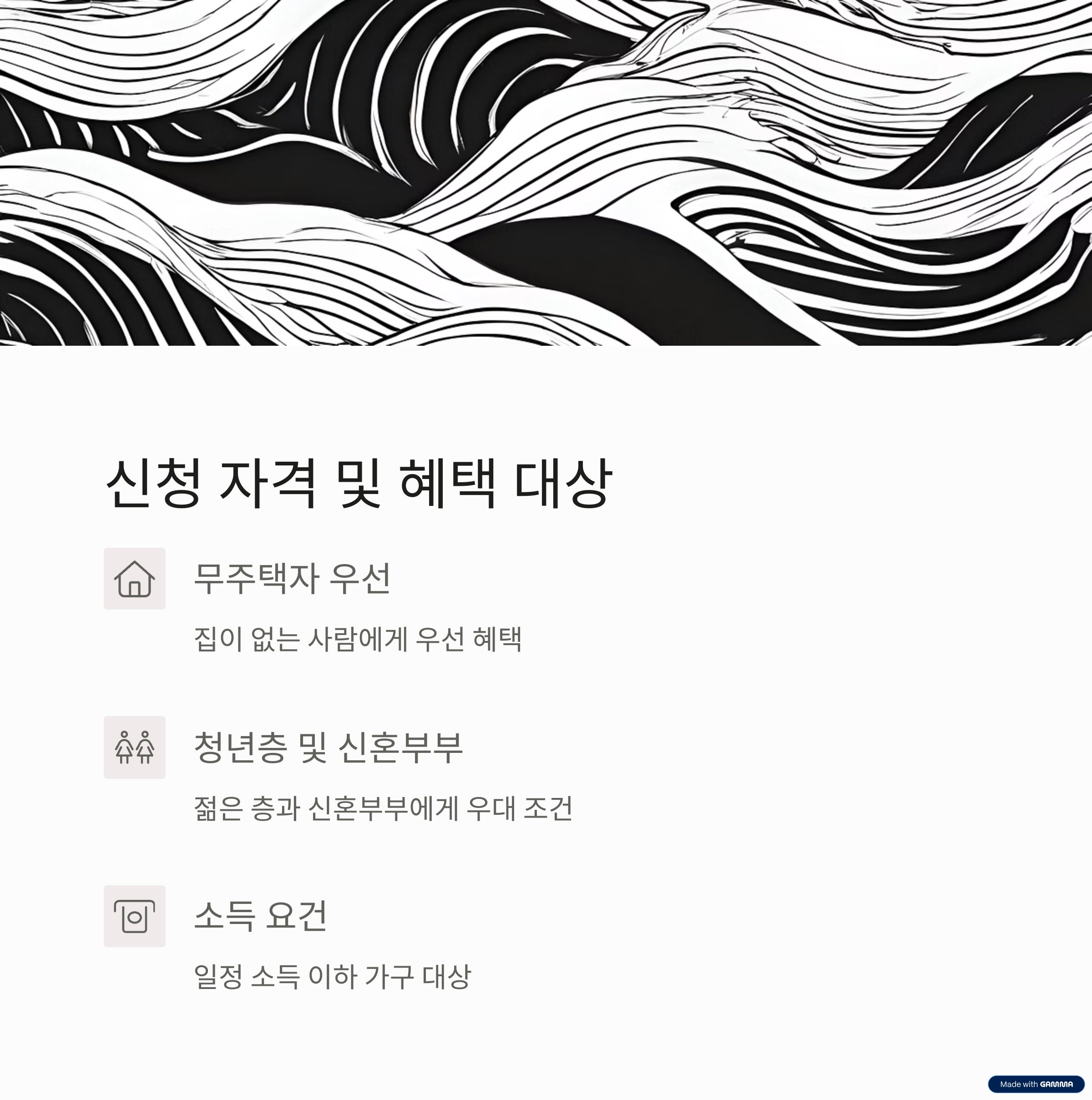 - 무주택자 우선: 무주택자에게 우선적으로 혜택이 제공됩니다.