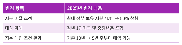 - 청년층 지원 강화: 청년층의 내 집 마련을 지원하기 위해 대상이 확대될 예정입니다.