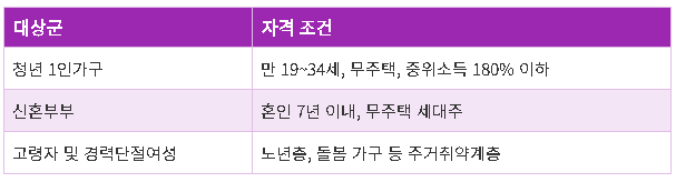 A2: 무주택자, 청년층, 신혼부부 등 일정 요건을 충족하는 사람이 신청할 수 있습니다.