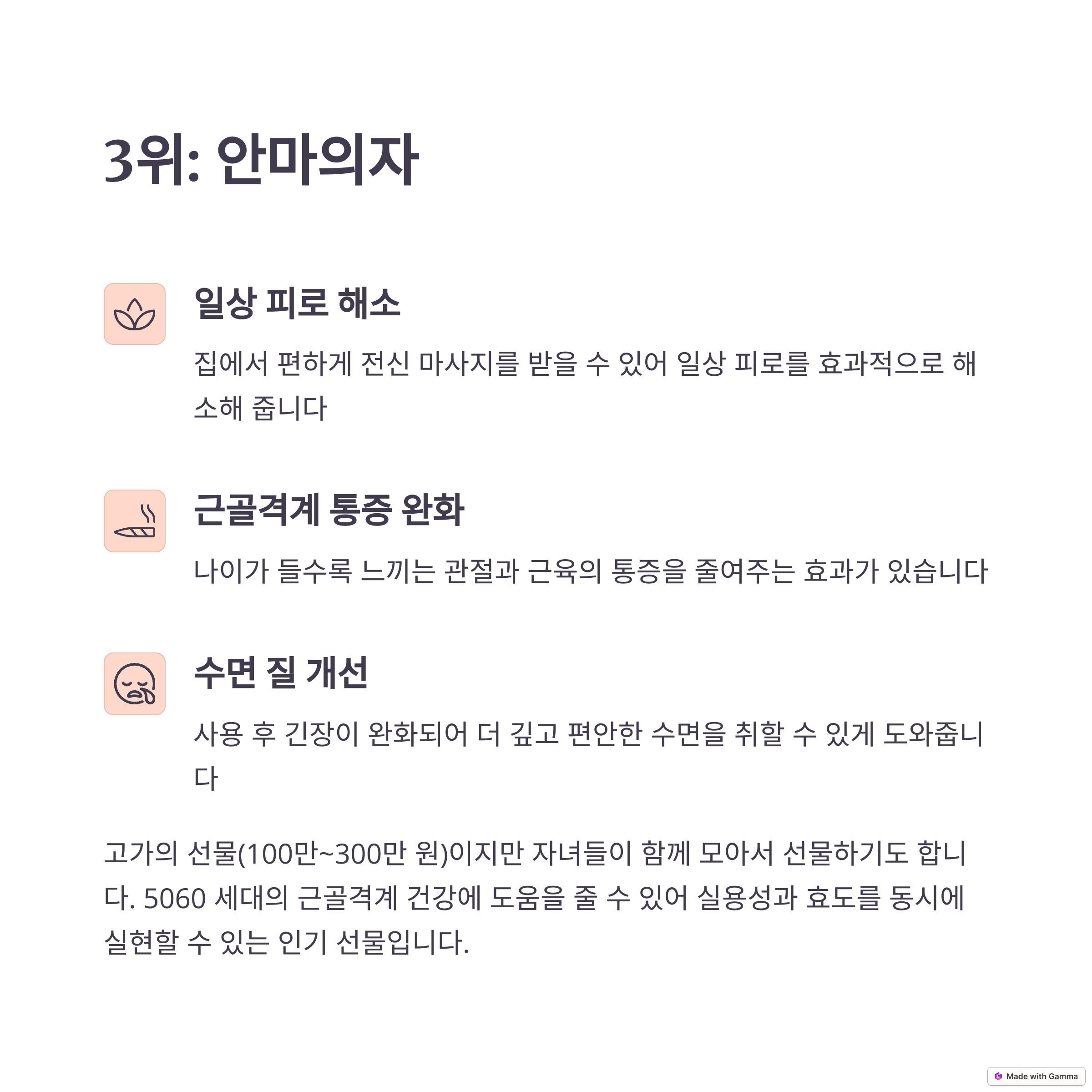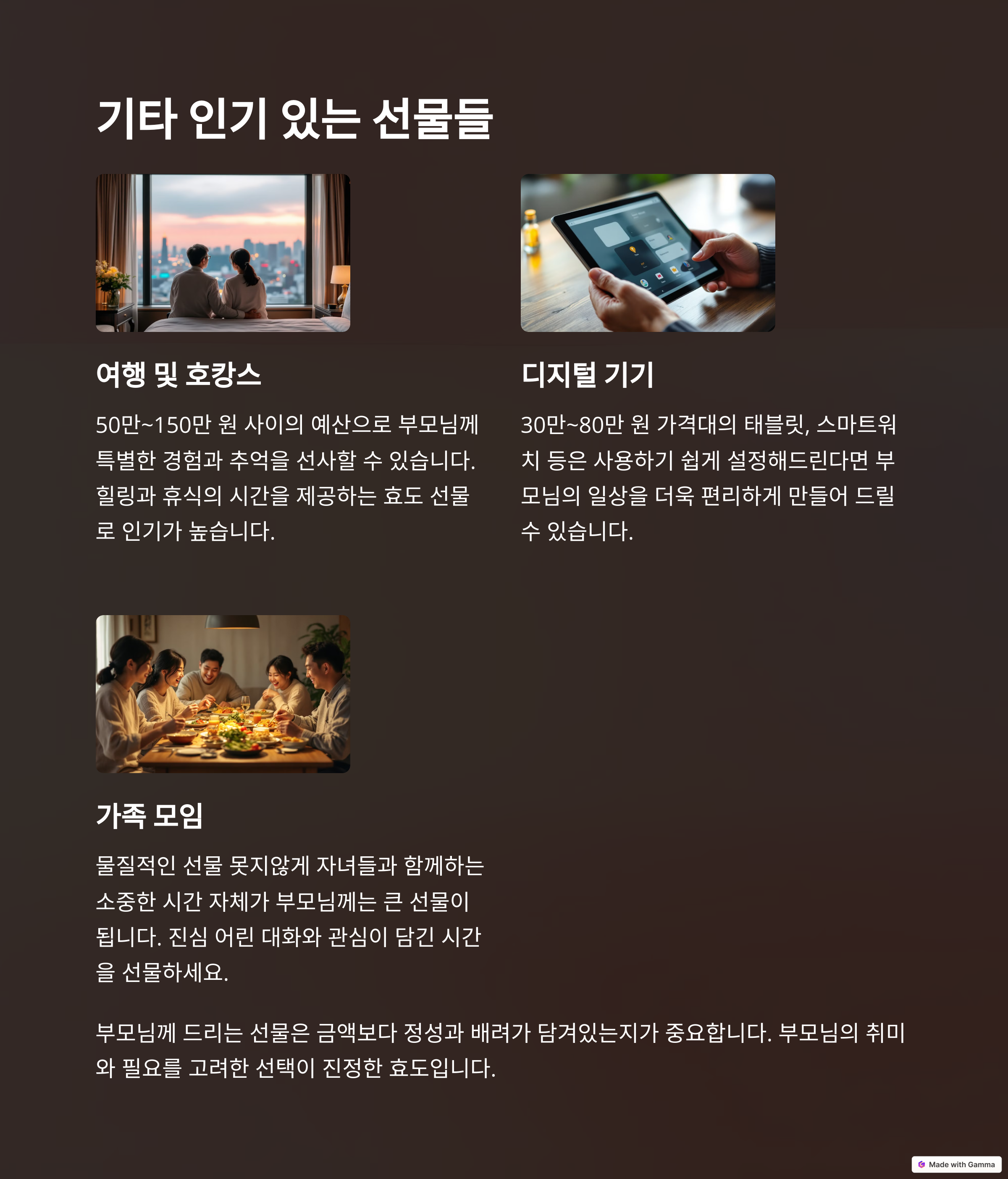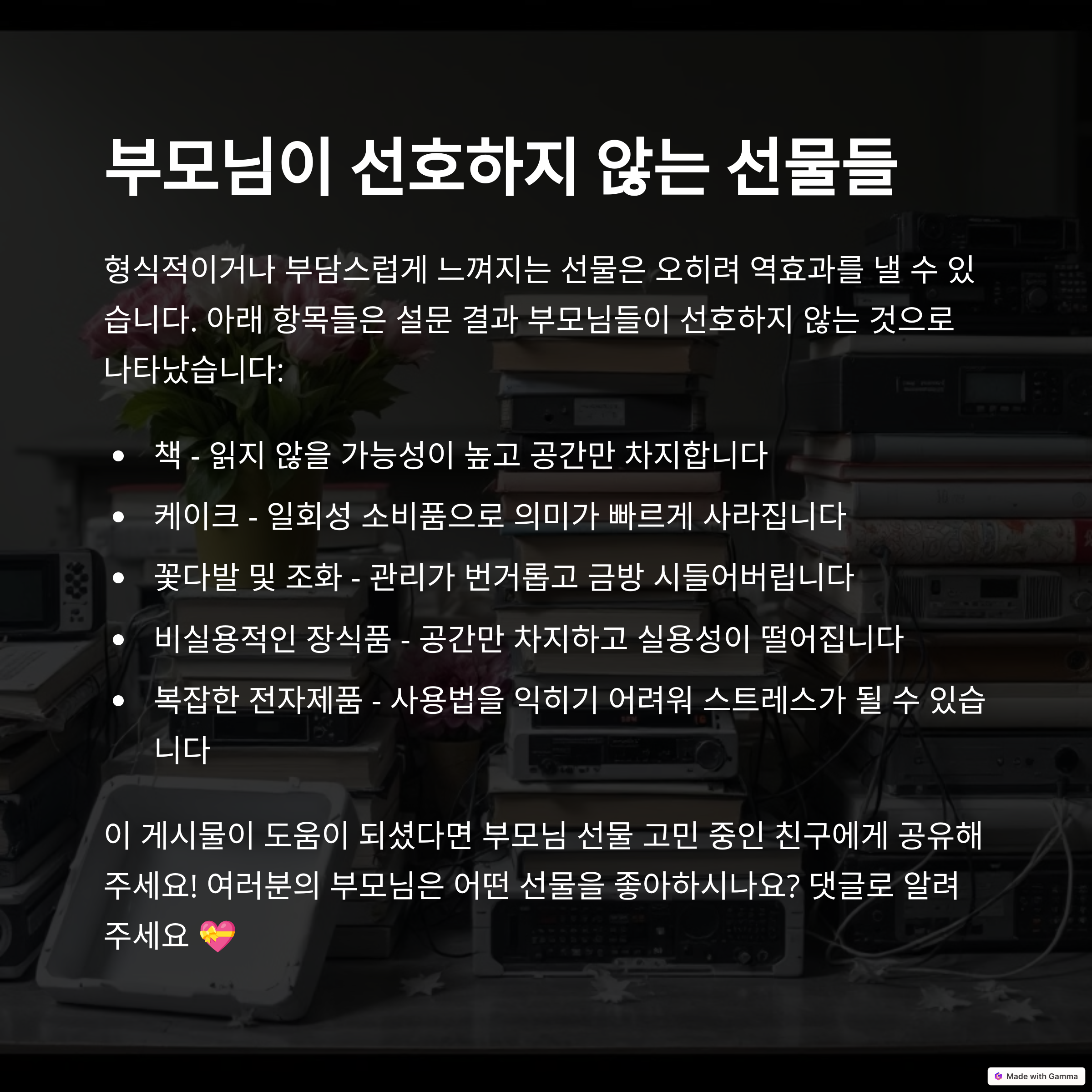 - 기피 이유: 부모님의 취향과 맞지 않으면 활용도가 떨어지고 만족도가 낮아집니다.