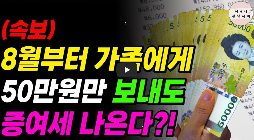 - 최근 SNS/유튜브 등에서 “8월부터 가족에게 50만원만 보내도 증여세 폭탄”이라는 내용이 확산 중입니다.