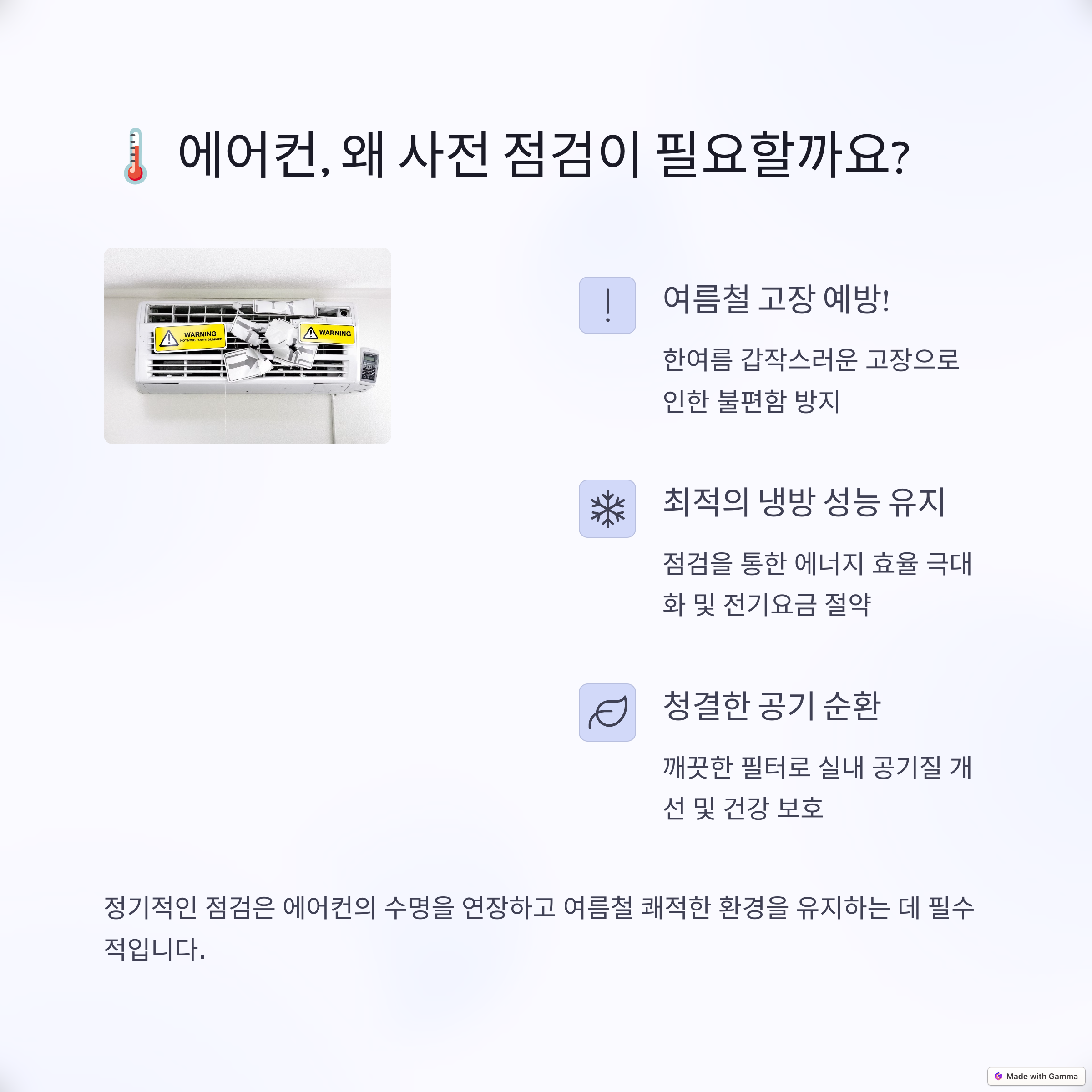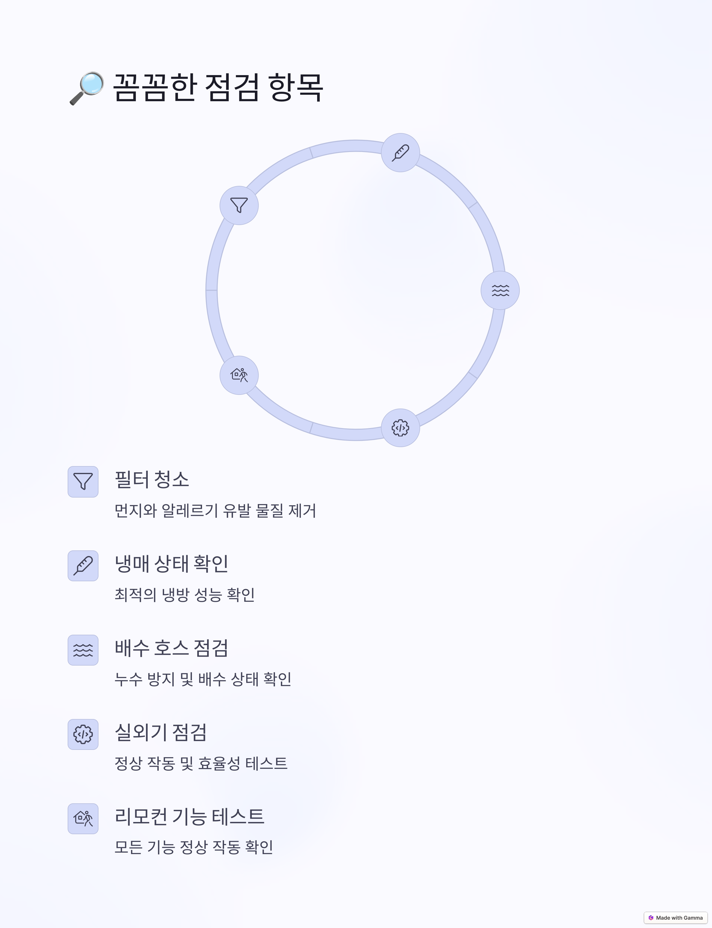 LG 에어컨 무상 사전점검 서비스는 다음 항목들을 포함하여 꼼꼼히 점검합니다: