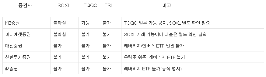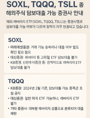 - **SOXL, TSLL은 대부분의 증권사에서 담보대출 불가**로 분류됩니다